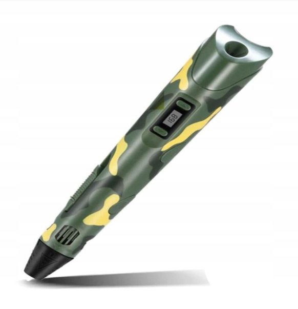 3D-ручка оснащена ЖК-дисплеем, на котором отображается текущая температура сопла 3D-ручки. Благодаря этому мы можем регулировать количество градусов для каждого материала, с которым мы работаем, например, другую температуру для PLA. нить накаливания и еще одна для ABS.
