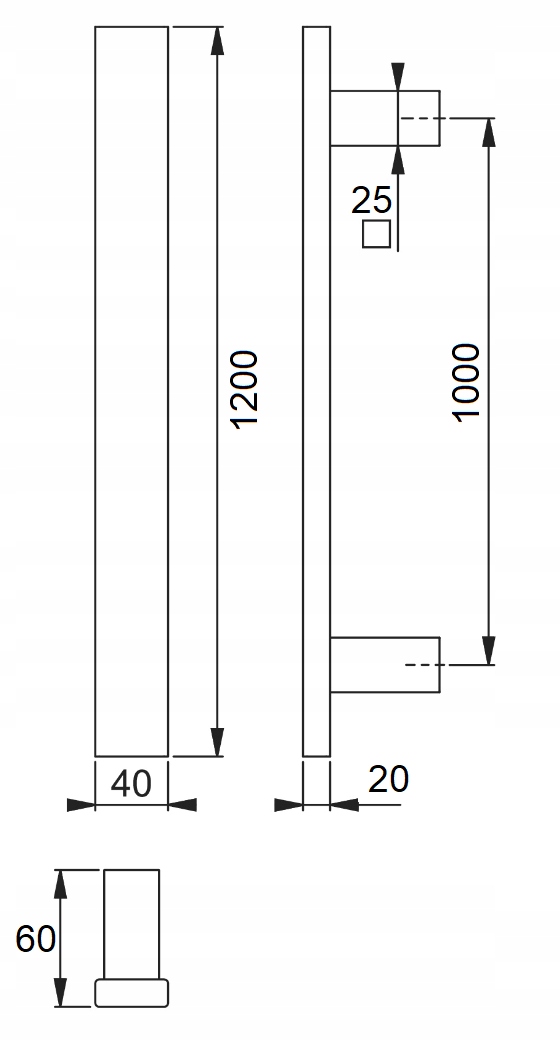 РУЧКА, РУЧКА ДЛЯ ВОРОТ ANTABA, ОДНОСТОРОННЯЯ, ПРЯМОУГОЛЬНАЯ, 1200 мм, НЕРЖ. СТАЛЬ