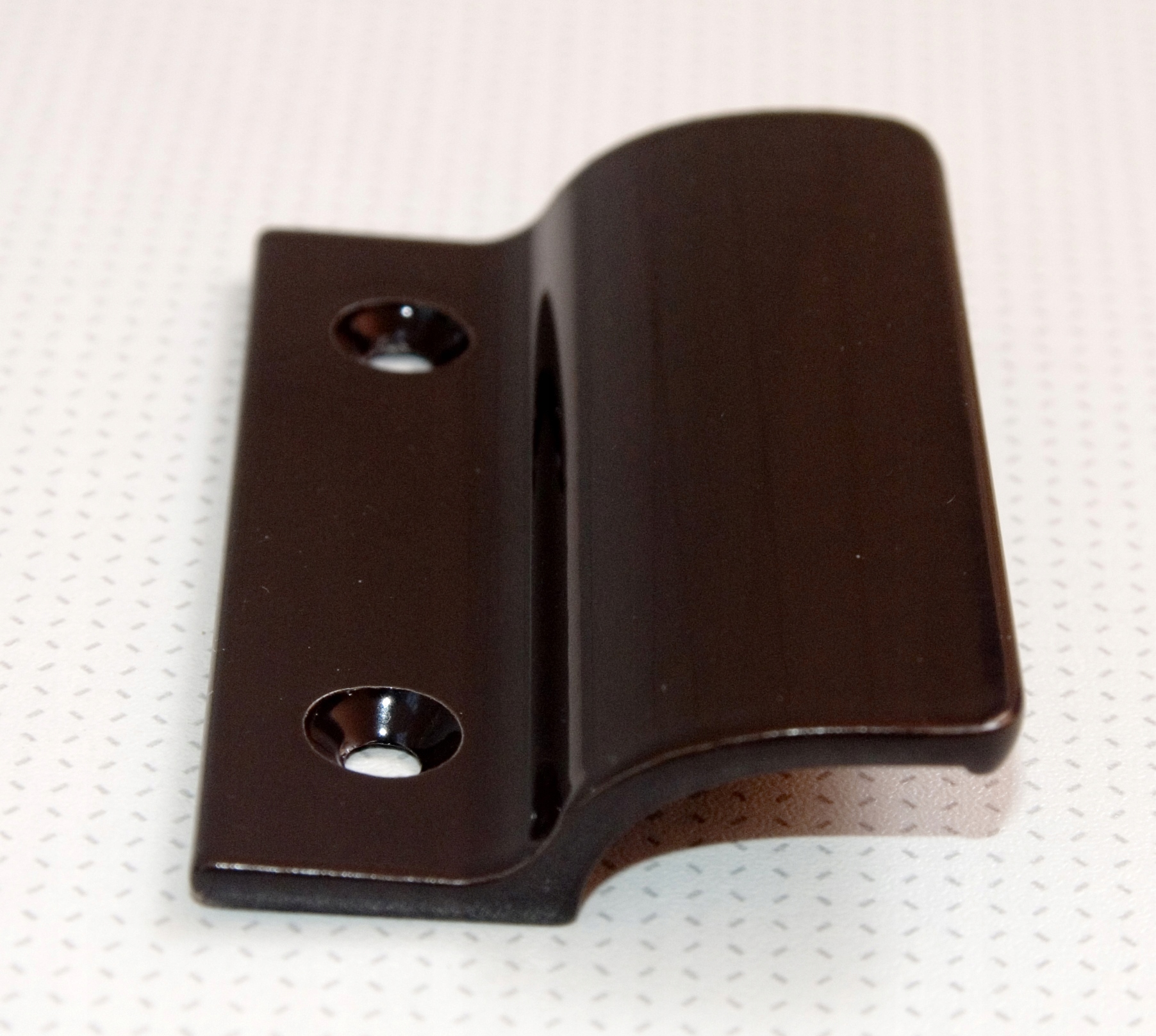 Описание: ручка изготовлена из алюминия, окрашенного в темно-коричневый цвет. Он сделан очень эстетично, поэтому после установки подходит практически к любому балконному окну. Ручка оснащена двумя отверстиями для крепежных винтов диаметром 4 мм. Установка предполагает прикручивание ручки к дверной или оконной раме с помощью двух шурупов. Ручку можно установить вертикально или горизонтально.