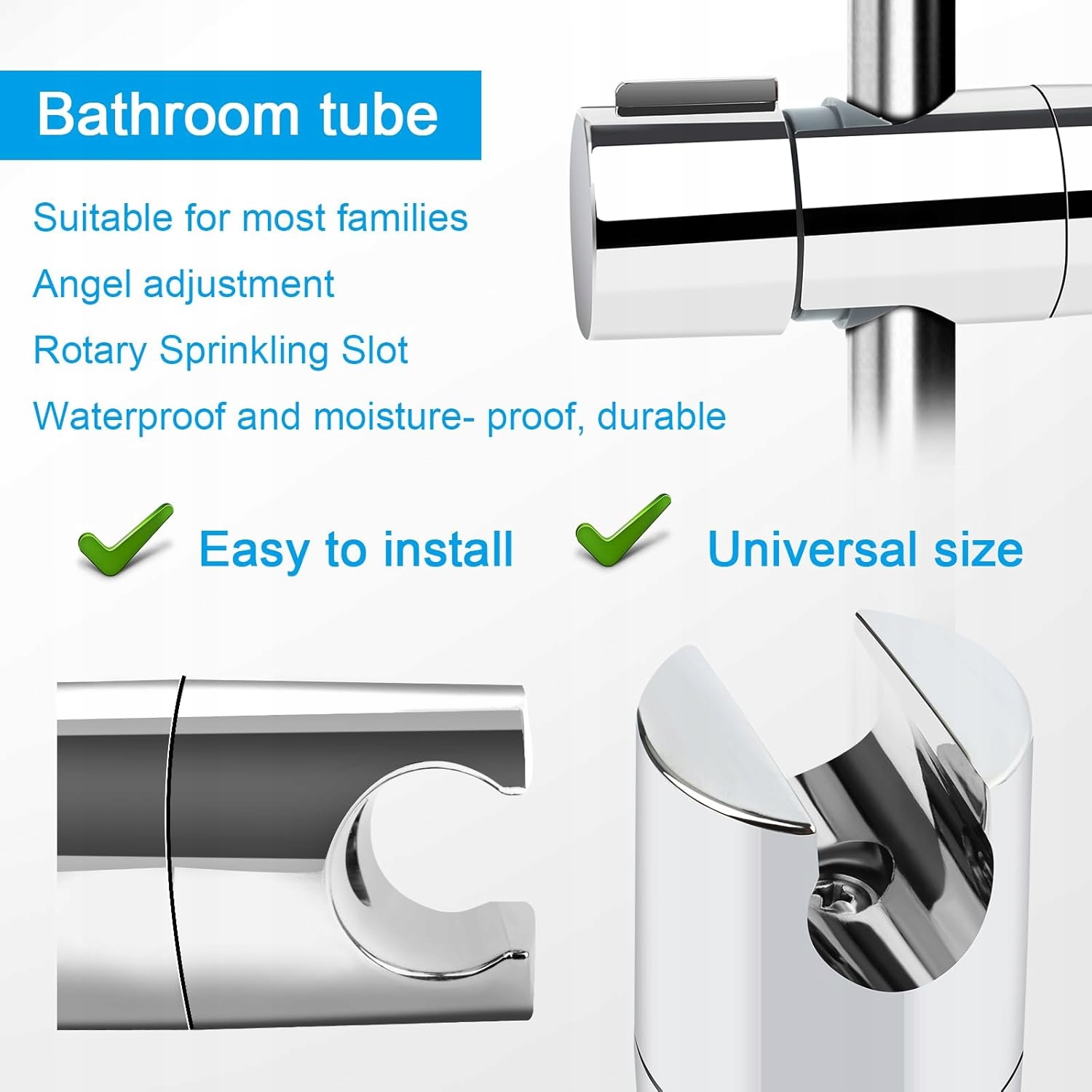 - Простая установка: вам не нужны какие -либо инструменты, вы можете быстро и легко установить и использовать. Наслаждайтесь гибкостью установки душевых форсунок и универсальности для душевых наушников. Наслаждайтесь комфортом. Подходит для круглых стержней для душа с диаметром 18-25 мм, подходит для большинства сопел для душа.