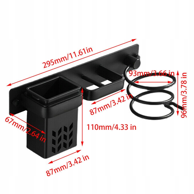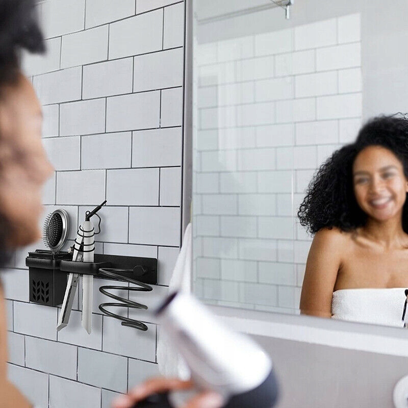 У этой стены держателя фен состоит 3 секции, в одной из них есть металлическая кружка, дополнительное место для хранения дополнительных волос и косметических продуктов. Вы можете хранить все инструменты горячей стилизации. Горячий стиль, расчески и кисть. Место и ванная комната всегда