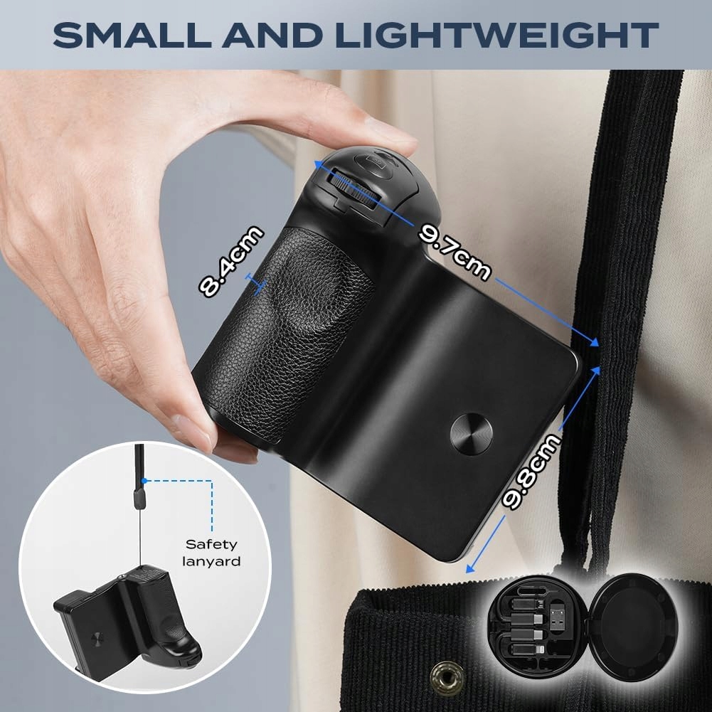 - 【Возможность использования в качестве мобильного источника питания】 Владелец смартфона не только удобен при фотографировании, но и выступает в качестве мобильного Powerbank. Он имеет встроенную батарею в 5000 мАч, которая после полной зарядки позволяет полностью заряжать мобильный телефон. Конкретное количество зарядов зависит от емкости батареи телефона. Этот инновационный дизайн позволяет вам наслаждаться стабильной фотографией, решая проблему отсутствия питания, благодаря тому, что путешествие становится напряженным.