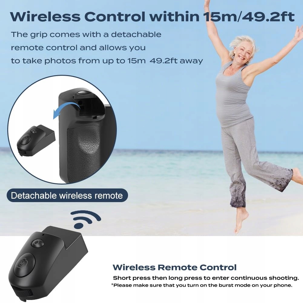- 【Пульт дистанционного управления】 Из -за съемного и загружаемого беспроводного дистанционного управления операция устройства является более гибкой. Этот держатель мобильного телефона облегчает фотографирование и записывать фильмы с больших расстояний. Диапазон пилота составляет до 15 метров, что обеспечивает удобство увековечивания каждого замечательного момента. Вам не нужно устанавливать какие -либо приложения - просто подключите устройство к смартфону, и вы можете легко сделать удивительные фотографии.