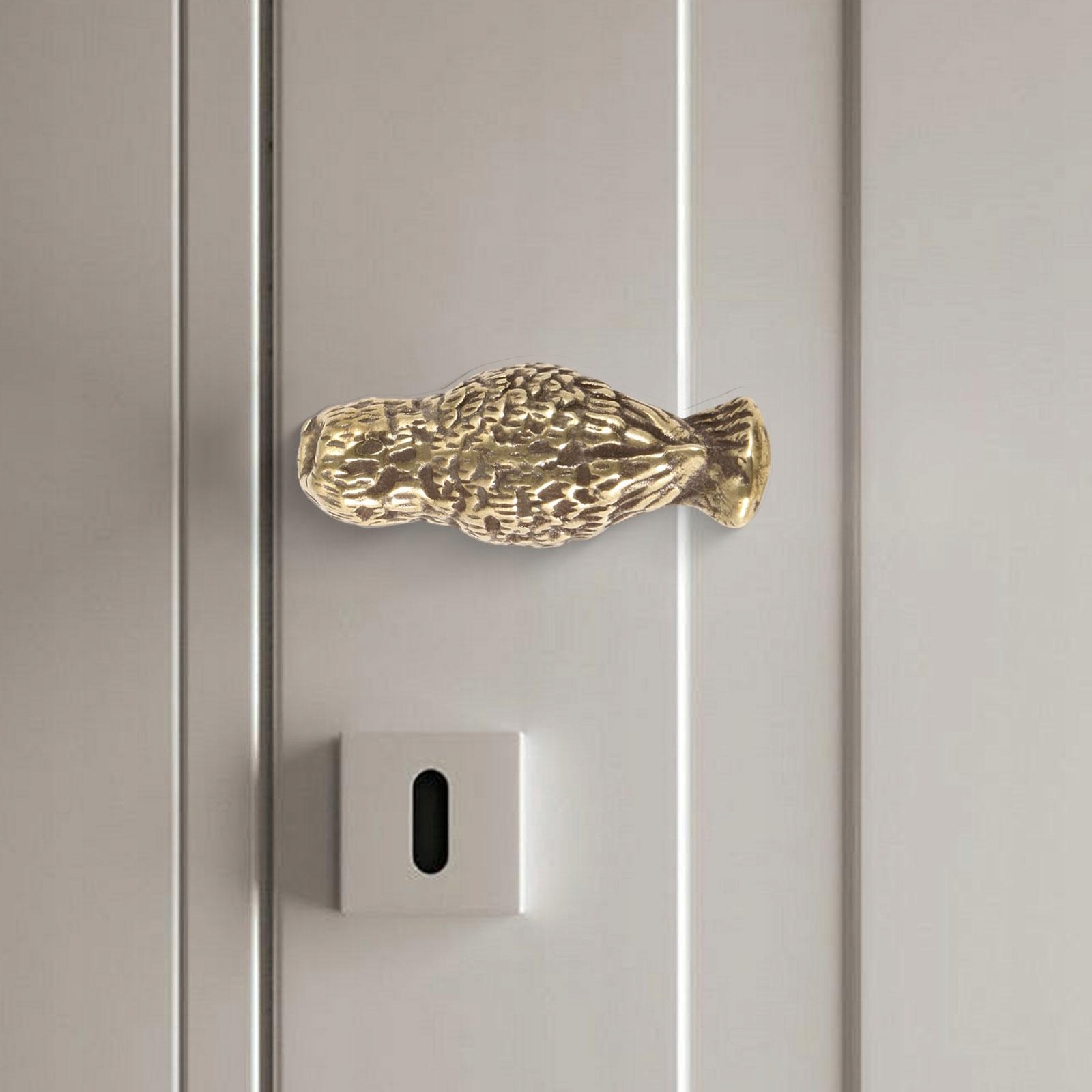 [Материал]: Дверная ручка в форме совы изготовлена из латуни, которая отличается хорошей устойчивостью к коррозии и долго сохраняет свою красоту.