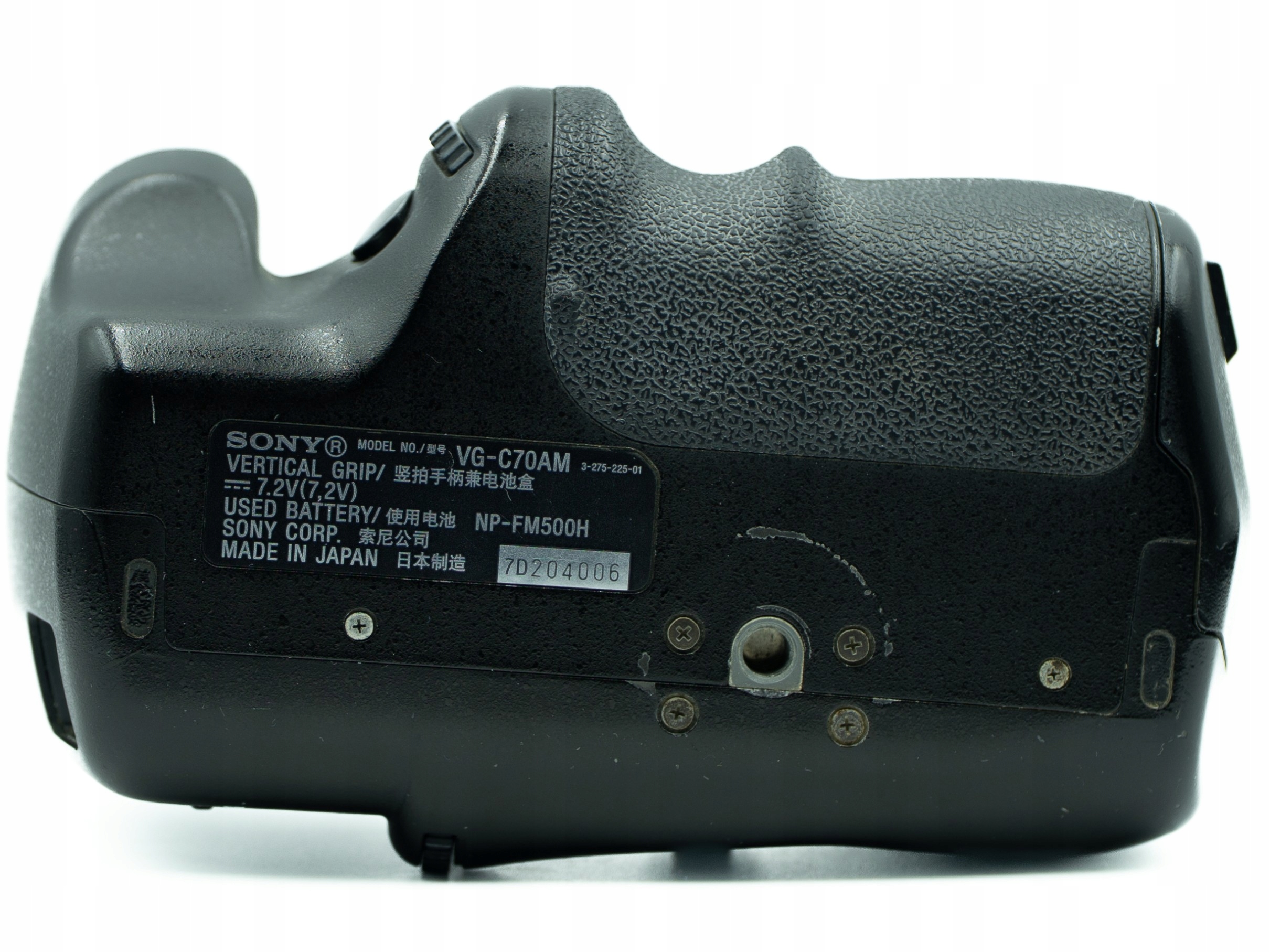 - 1x батарея Grip Sony VG-C70AM с вставкой для двух батарей Sony NP-FM500H с серийным номером 7D204006