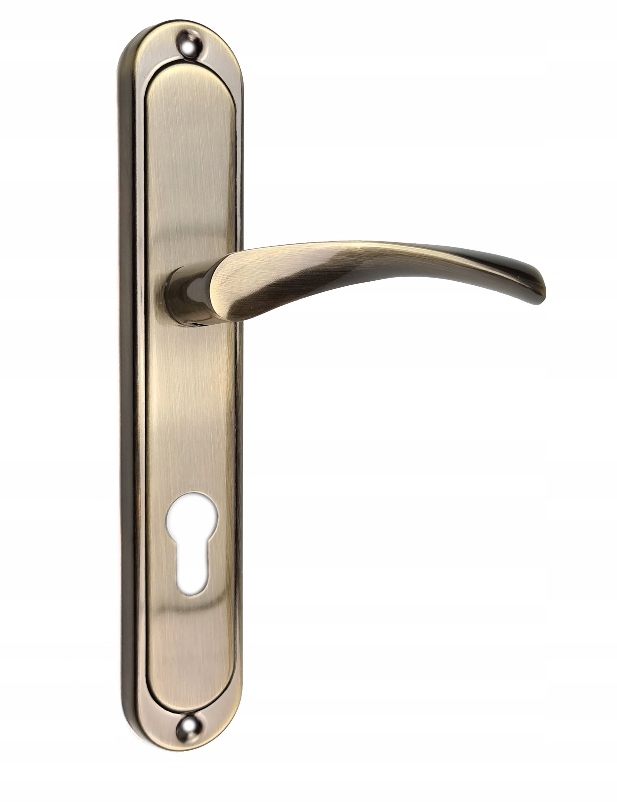 Ручка рома оснащена поддержкой пружины, которая поддерживает работу блокировки. Патиновая отделка делает ручку дверной руки элегантной на нашей двери. Разработано для внутренних дверей.