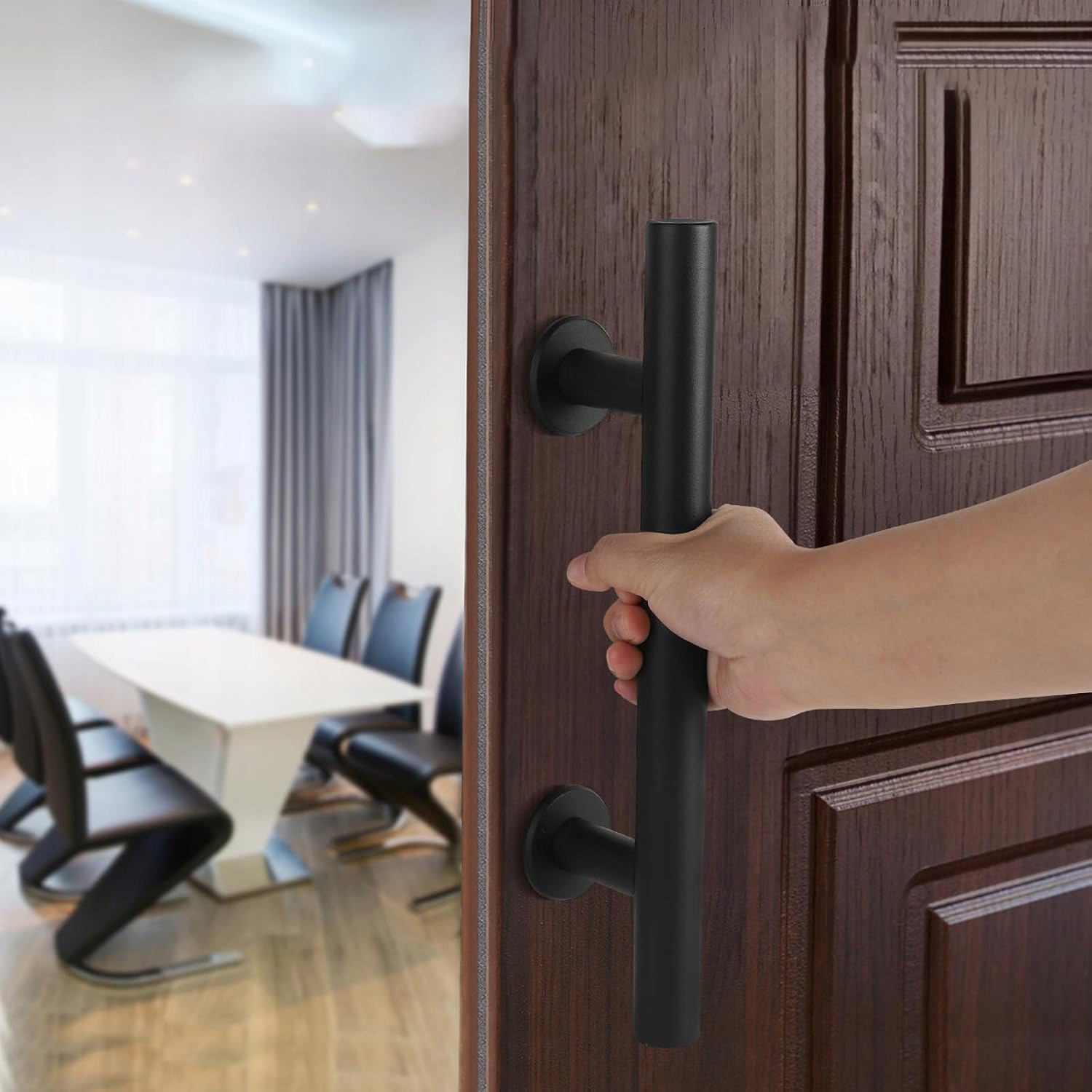 👍👍【Элегантный дизайн】: поверхность ручки раздвижной двери матово-черная, не оставляет отпечатков пальцев при захвате, черные дверные ручки имеют современный вид, красивы спереди и сзади, подходят для большинства стилей квартир, добавляют нотку модного цвета в вашу дома.