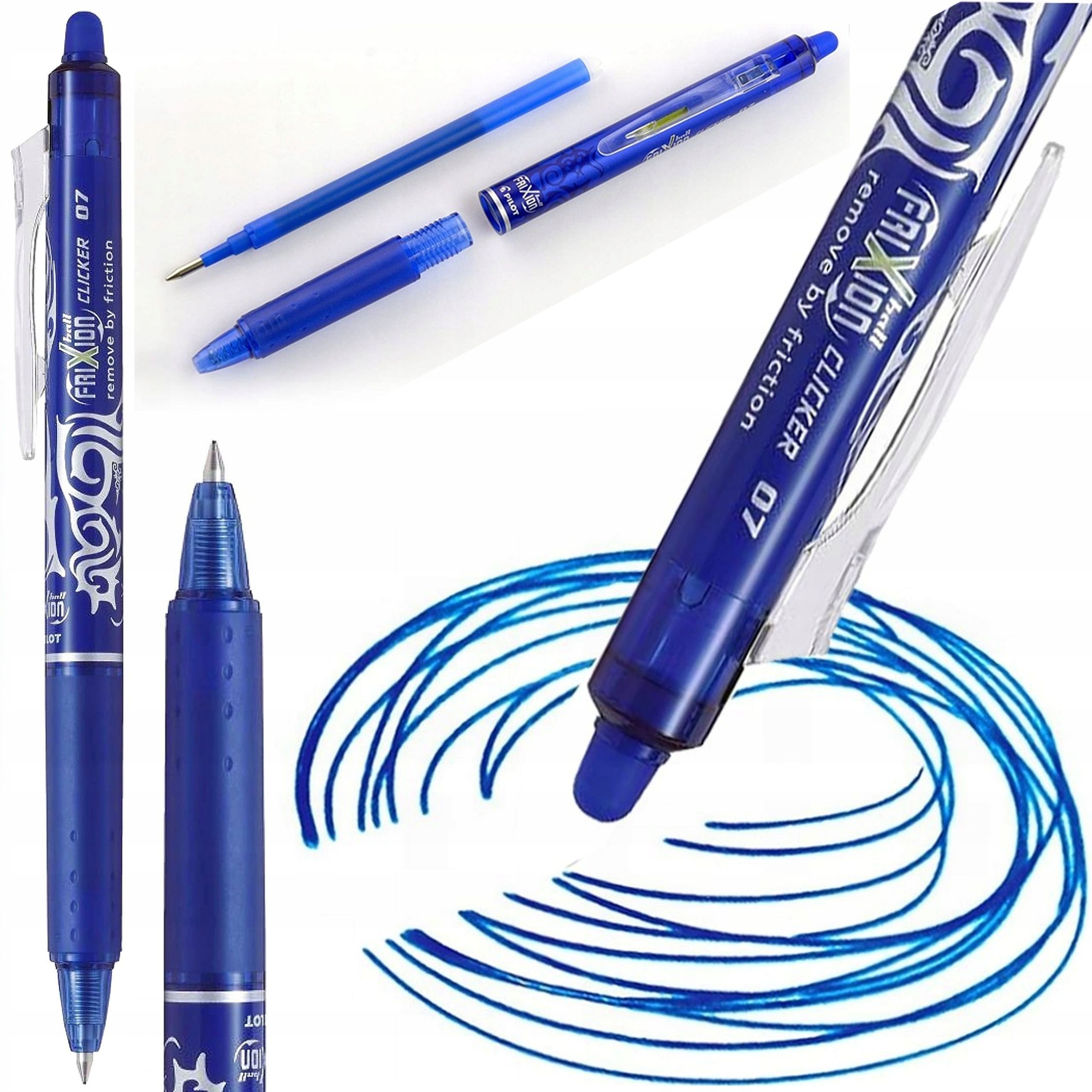 FriXion Clicker 0.7 от Pilot — инновационная шариковая ручка с печатающим механизмом. Просто нажмите на клип и начните писать. Он убеждает теми же свойствами, что и другие продукты семейства FriXion: пишет, растирает, корректирует! Кончик ручки, оснащенный термочувствительными чернилами, мягко скользит по бумаге. Длинные тексты больше не проблема, ведь писать с помощью FriXion Clicker просто одно удовольствие! Главное преимущество: пластиковый наконечник на конце стержня позволяет быстро исправлять мелкие ошибки полета! Под воздействием тепла трения (прибл. 60 °C) надпись исчезает, и благодаря короткому времени ее можно поместить в морозильную камеру (приблизительно -10 °C). FriXion Clicker чрезвычайно прочен и устойчив к давлению благодаря пишущим наконечникам из нержавеющей стали с вольфрамовым шариком. Металлический корпус кликеров FriXion, который также отражает цвет письма, делает его идеальным спутником в офисе, на учебе или на втором уровне. Независимо от того, левша или правша, эта инновационная шариковая ручка всегда хорошо лежит в руке и обеспечивает приятное ощущение при письме. Разумеется, FriXion Clicker можно заправлять с помощью заправочных картриджей PILOT BLS-FR7 (2261) выбранного цвета. Цвет чернил: синий. Диаметр шарика: 0,7 мм. Ширина линии: около 0,4 мм. Совет. Картриджи FriXion не подходят для перманентных документов.