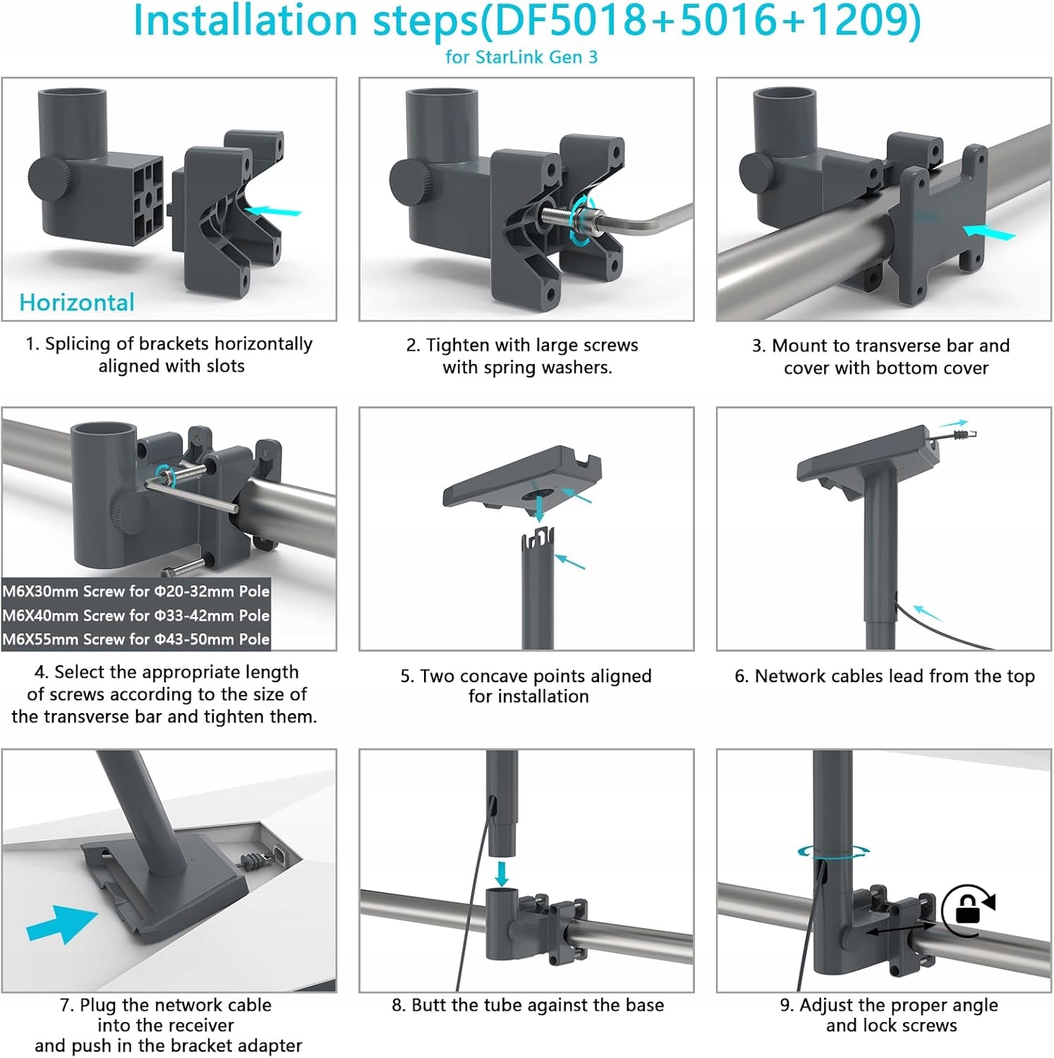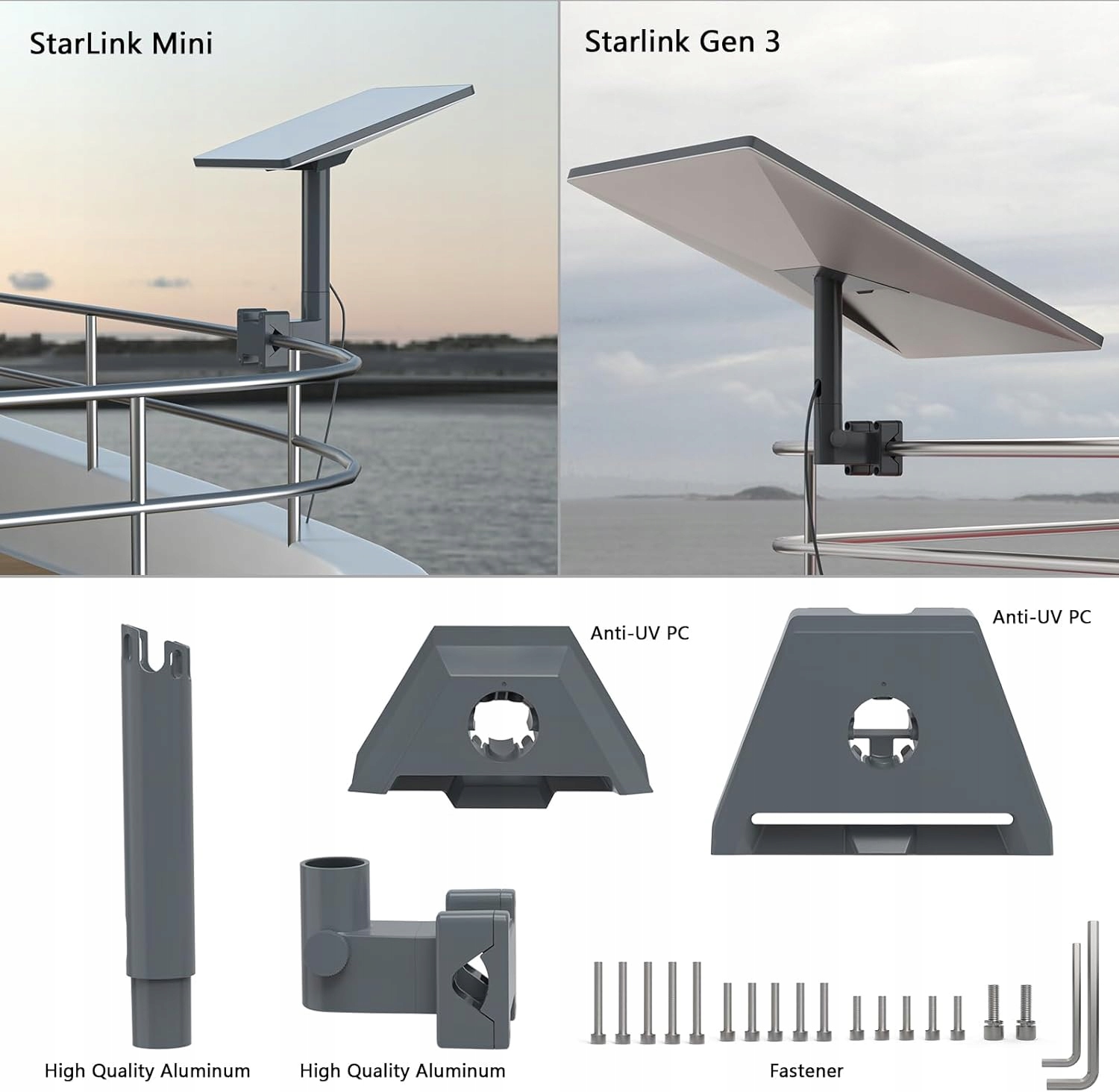 - Улучшенная ручка, в отличие от предыдущей версии ручки, мы изменили структуру ручки, чтобы ее можно было отрегулировать в любом направлении. Включает в себя адаптер трубки, в адаптере Starlink Gen3/2 + адаптер адаптер Starlink Mini + RV держатель зарядного устройства. Starlink не прикреплена. Диапазон диаметра ручки лестницы RV составляет 0,8-1,97 дюйма (20-50 мм), его можно гибко использовать в различных сценариях, таких как крыши домов, крыши автомобилей и другие. Держатель мачты изготовлен из прочного алюминиевого сплава, который имеет высокую грузоподъемность и не деформируется.