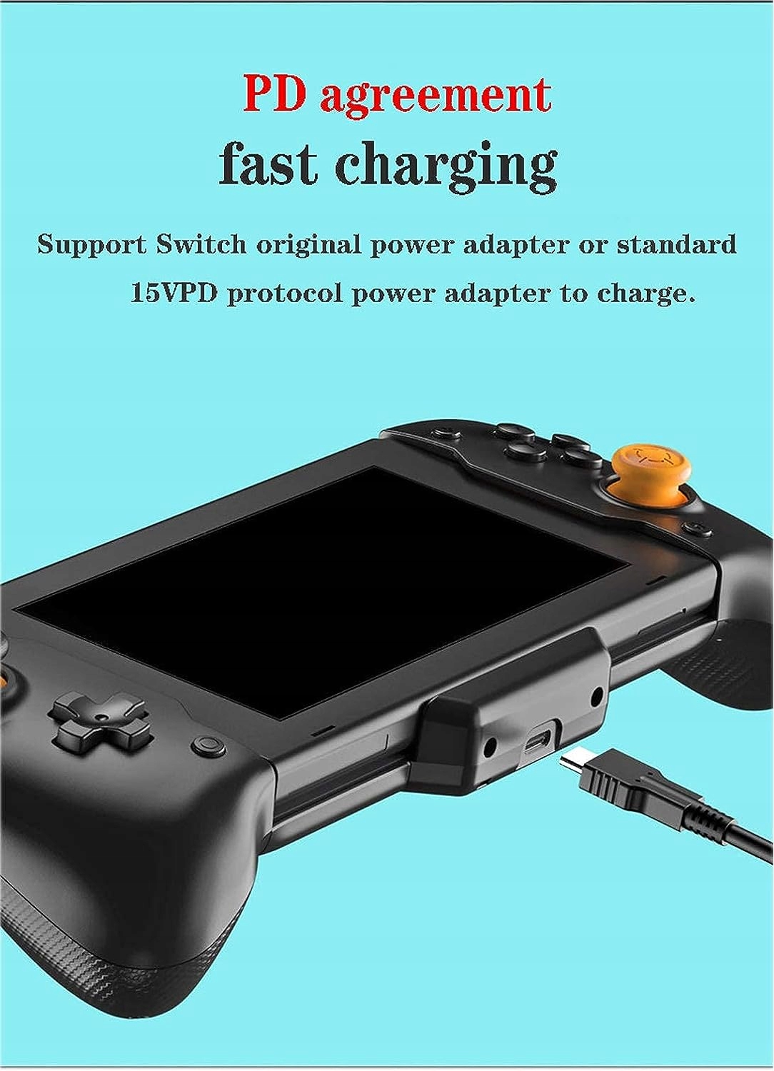 4. 【Быстрая зарядка】: используется дизайн интерфейса TPYE-C, поддерживается зарядка во время игры на игровой консоли Switch, а также поддерживается входная зарядка оригинального источника питания Switch или стандартного источника питания 15 В по протоколу PD;