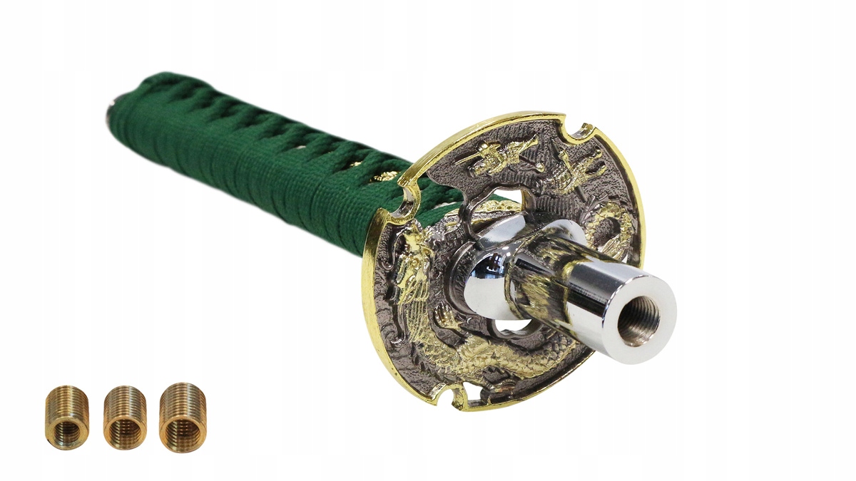Очень тщательно изготовленная алюминиевая ручка переключения передач в стиле рукоятки самурайского меча. Подходит для всех автомобилей с механической коробкой передач без подъёма задней передачи.