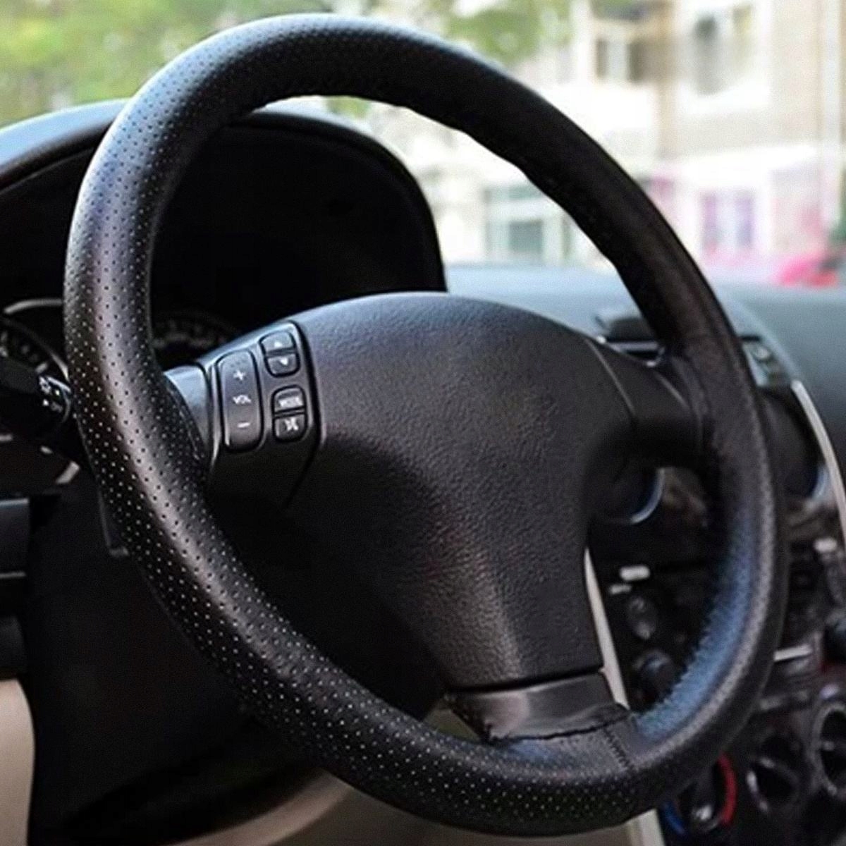 ✅1 x Черный грузовик с приводимой кожей PU с иглами и подходящей нитью 38 см. Крышка рулевого колеса p>