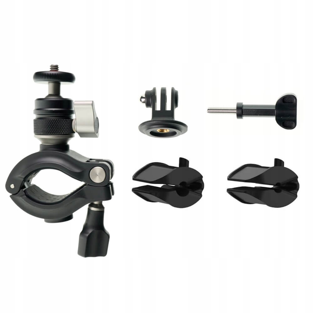 Универсальный монтажный кронштейн Panox позволяет закрепить спортивную или сферическую камеру на трубах диаметром от 9 до 38 мм, например на трубах диаметром от 9 до 38 мм. на руле велосипеда или мотоцикла. Прочная алюминиевая конструкция гарантирует безопасную и стабильную установку вашего устройства. Держатель оснащен коротким кронштейном с шаровой головкой, облегчающим регулировку угла записи, заканчивающимся наружной фотографической резьбой 1/4". Добавленные в комплект специальные силиконовые вставки позволят правильно подогнать держатель под диаметр трубы и защитят его от скольжения при вибрациях. В комплект также входит монтажный адаптер для крепления GoPro, DJI и многих других камер.
