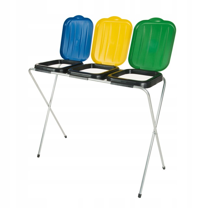 ПОДСТАВКА С РУЧКОЙ 3 X 120 Л ТРОЙНАЯ ДЛЯ РАЗДЕЛЕНИЯ МУСОРА ПЛАСТИК БУМАГА СТЕКЛО