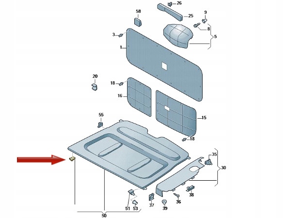 РУЧКА ЗАДНЕЙ ПОЛКИ БАГАЖНИКА ЛЕВАЯ VW CADDY 04-20