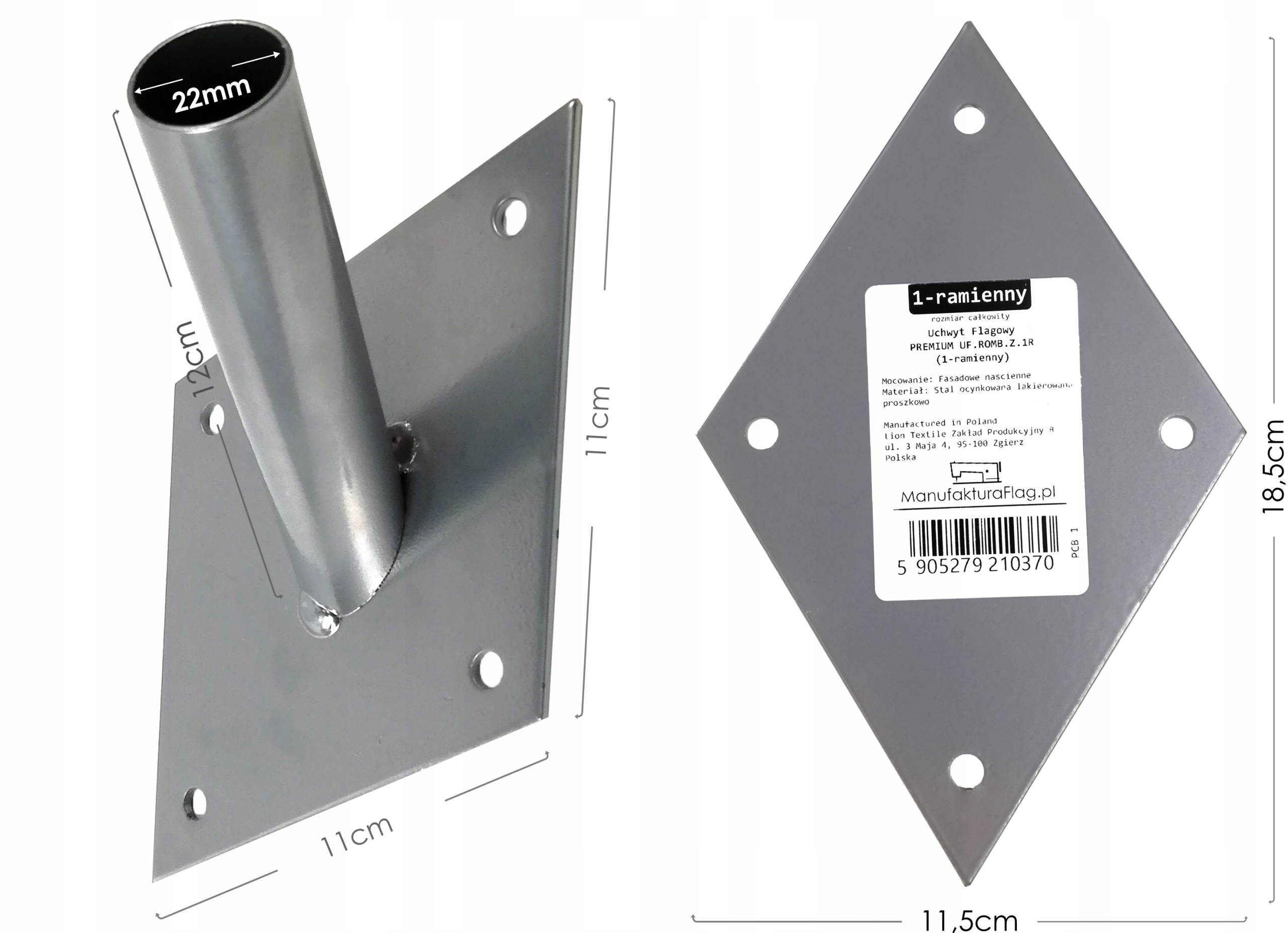 Держатель для флага, 1 кронштейн, фасад
