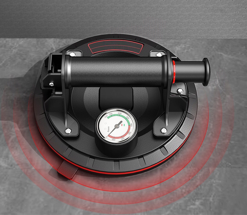 Ручка интегрирована с аналоговым манометром, который позволяет считывать и контролировать давление между резиновой присоской и перемещаемым элементом. Четкая шкала обеспечивает полную безопасность, вы узнаете в любой момент, когда хватка ослабнет и необходимо выкачать воздух.
