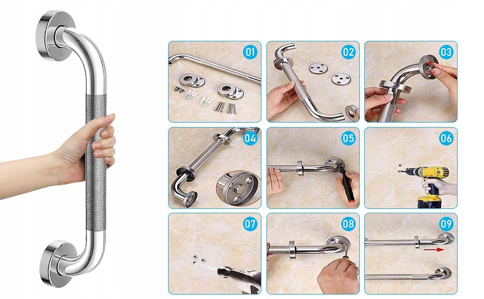 ПРЯМАЯ РУЧКА 40см ДЛЯ ПЕРИЛ ВАННОЙ ДЛЯ ИНВАЛИДОВ ДЛЯ ПОЖИЛЫХ 2 EL