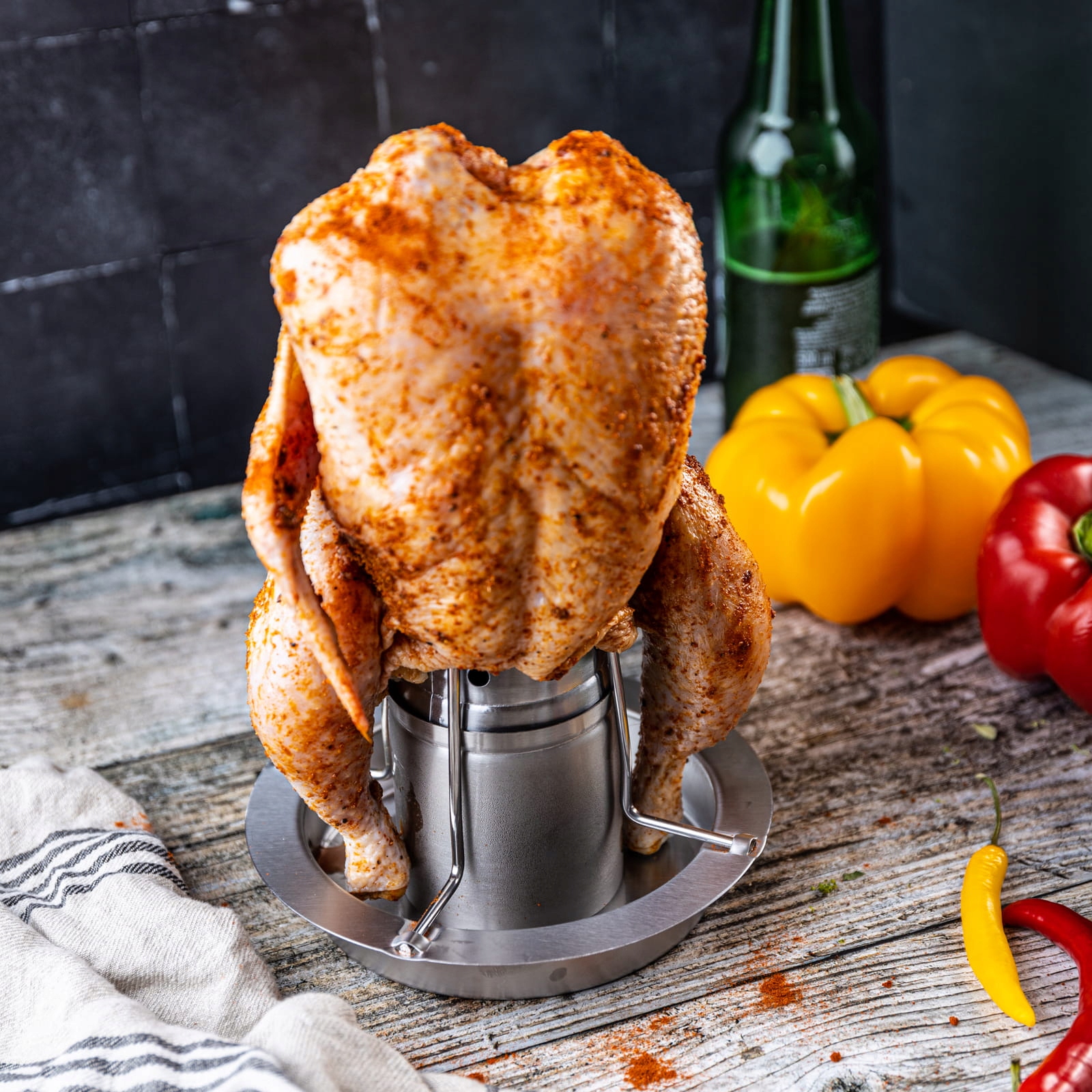 - Ручка для выпечки с курицей изготовлена из прочной нержавеющей стали, прочной и долговечной. Летал и хрустят вокруг. Вы можете добавить различные специи по желанию и вкусовые предпочтения. Дизайн стойки с курицей имеет много отверстий, которые лучше распространяют аромат и делают гриль -курицу. Сталь). 18 см