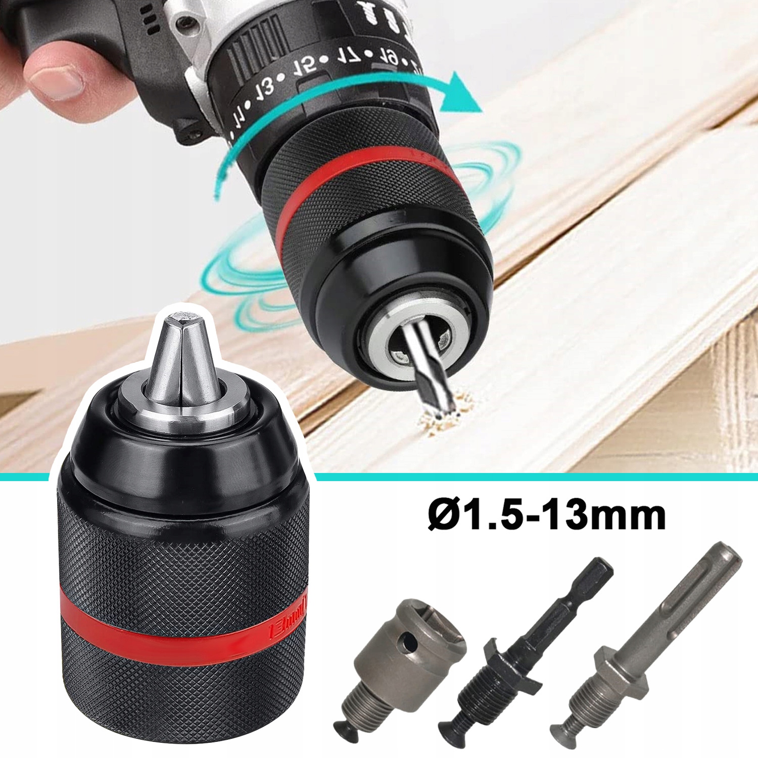 Широкое применение: этот сверлильный патрон предлагает широкий диапазон размеров зажима от 1,5 мм до 13 мм, с соединением 1/2 дюйма x 20 UNF. Подходит для многих типов сверл.