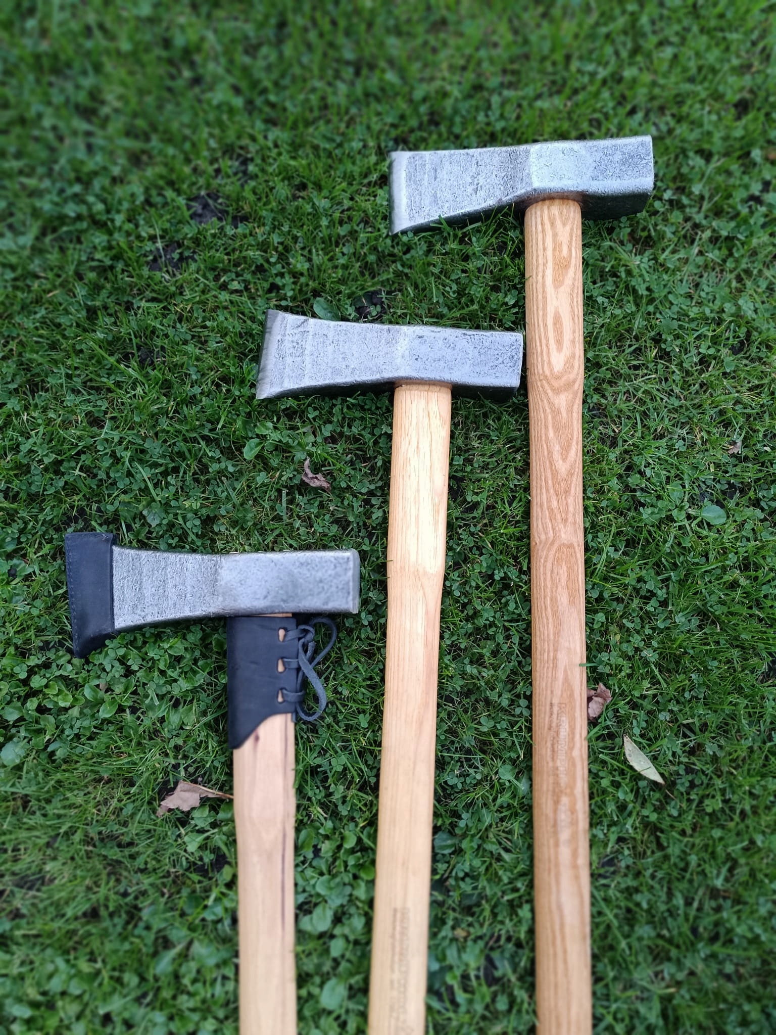 (Превью-фото с сессии - показаны 3 топора-молота. Один с рукояткой из ясеня 4001, второй с рукояткой из гикори 4002, третий с кожаным чехлом 4005)< /h1>