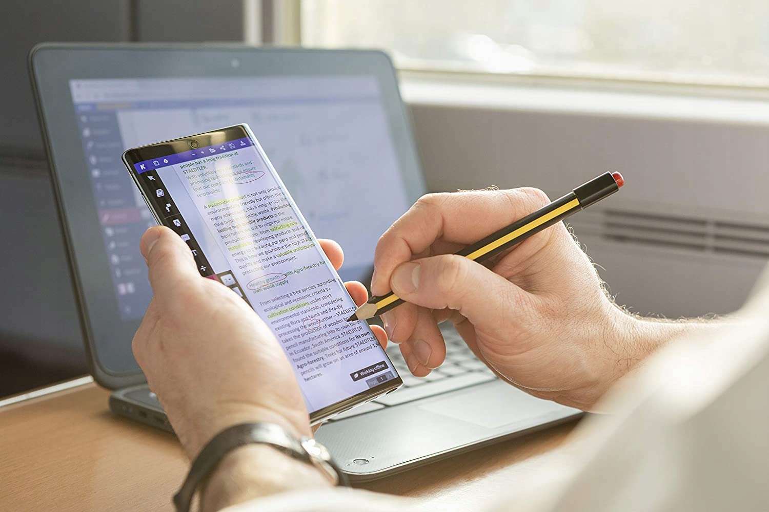 Благодаря этой технологии и эргономичной формы Noris Digital Jumbo, вы можете положить руку на дисплей, чтобы печатать было удобнее (функция зависит от приложения) и писать, не утомляя руки. Вы можете выделять текст и делать заметки в файлах PDF, например конспекты лекций, а затем делиться ими без необходимости распечатывать несколько страниц. Это не только экономит бумагу, но и время.