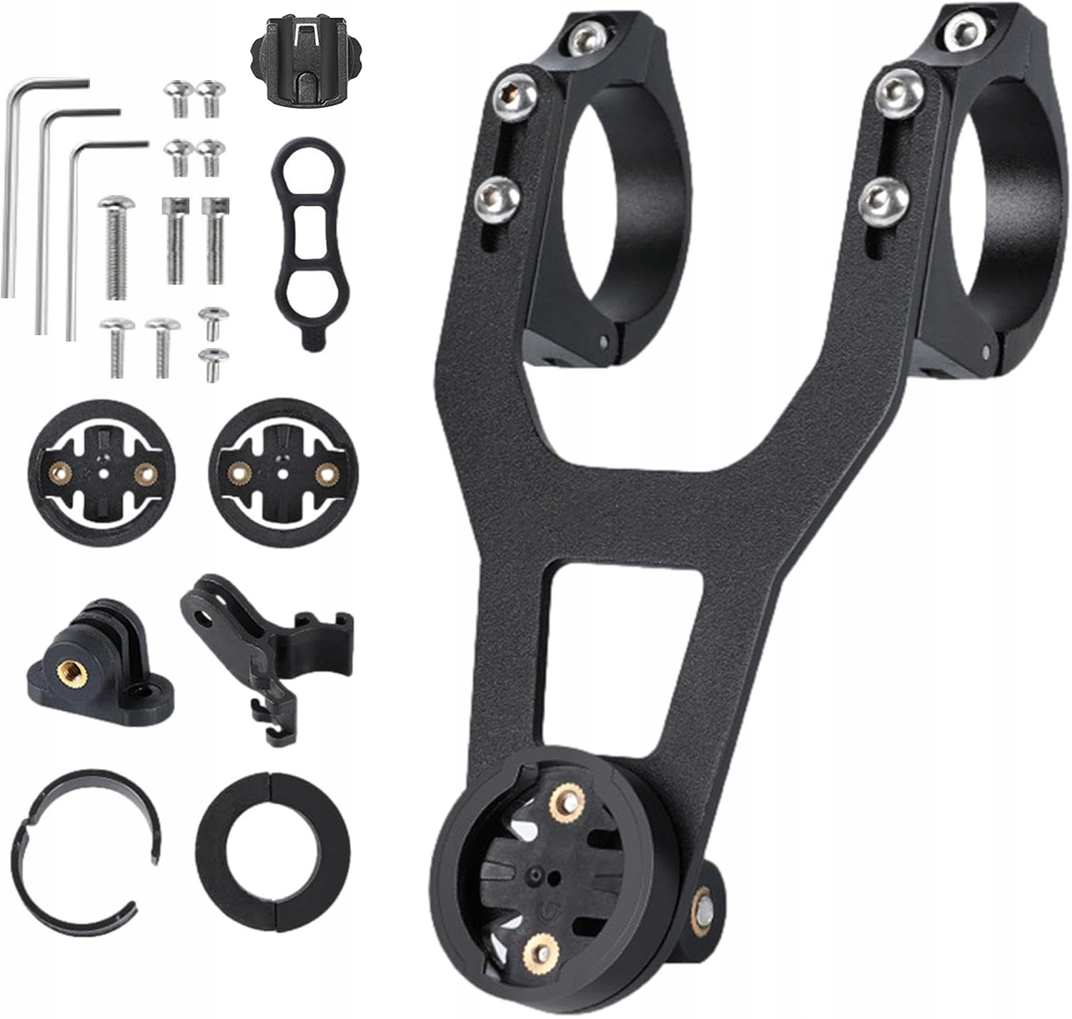 - Ручка -легкая, долговечная, устойчивая к коррозии и деформации, что гарантирует долгосрочное использование. <Он содержит ряд аксессуаров, в том числе Garmin, Bryton и Cateye, держатель камеры GoPro, держатель света, резиновые зажимы, расстояния, винты и ключи.