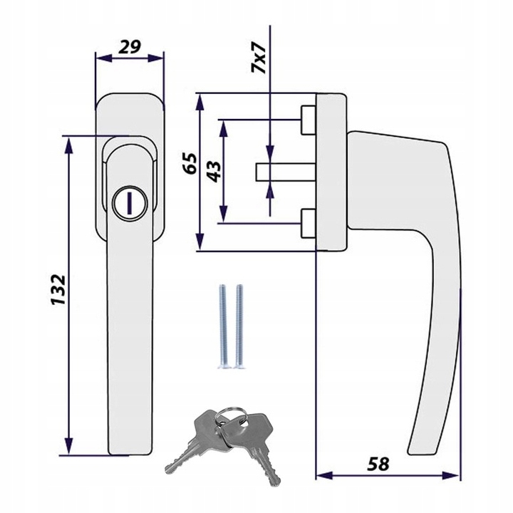 ОКОННАЯ РУЧКА С КЛЮЧОМ И ЗАМКОМ ДЛЯ ОКНА, БЕЛАЯ