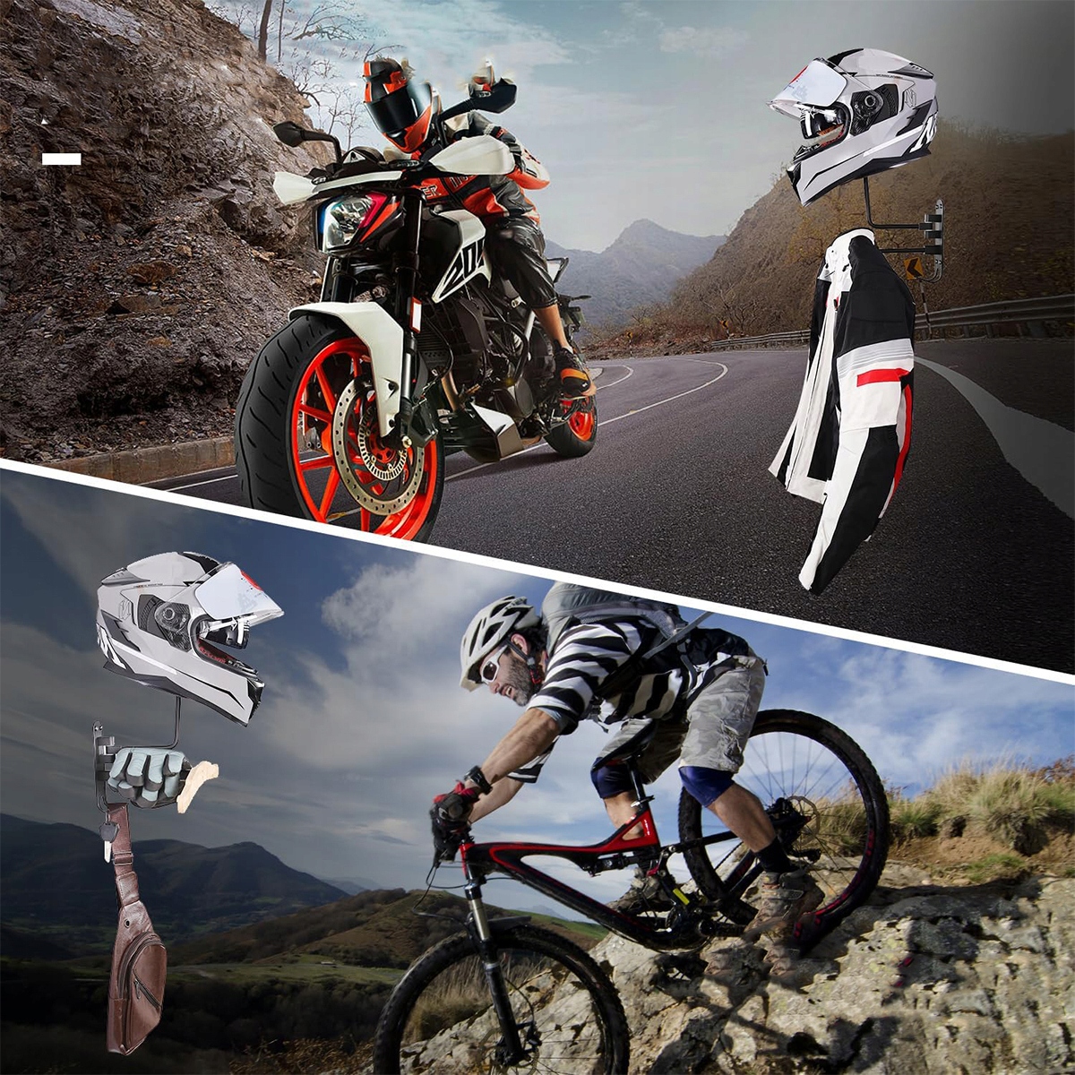 - 【Сильный и долговечный】 , изготовленный из высококачественного алюминия, держателя мотоциклетных шлемов, не только характеризуется высокой нагрузкой способностью хранения шлемов и курток, но также является долговечным и устойчивым к коррозии, которая гарантирует хорошую долгосрочную эффективность.