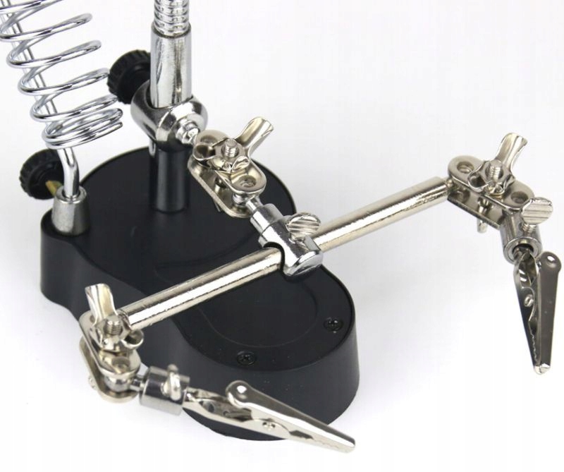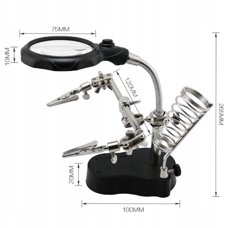 Держатель "Третья рука" в комплекте с двойной лупой, светодиодной подсветкой и держателем для паяльника - значительно облегчает работу, требующую точности, незаменим при соединении и пайке различных мелких элементов