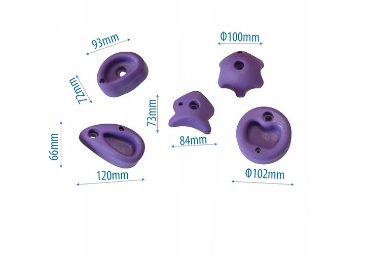 - 5 разных камней для лазания (фиолетового цвета)