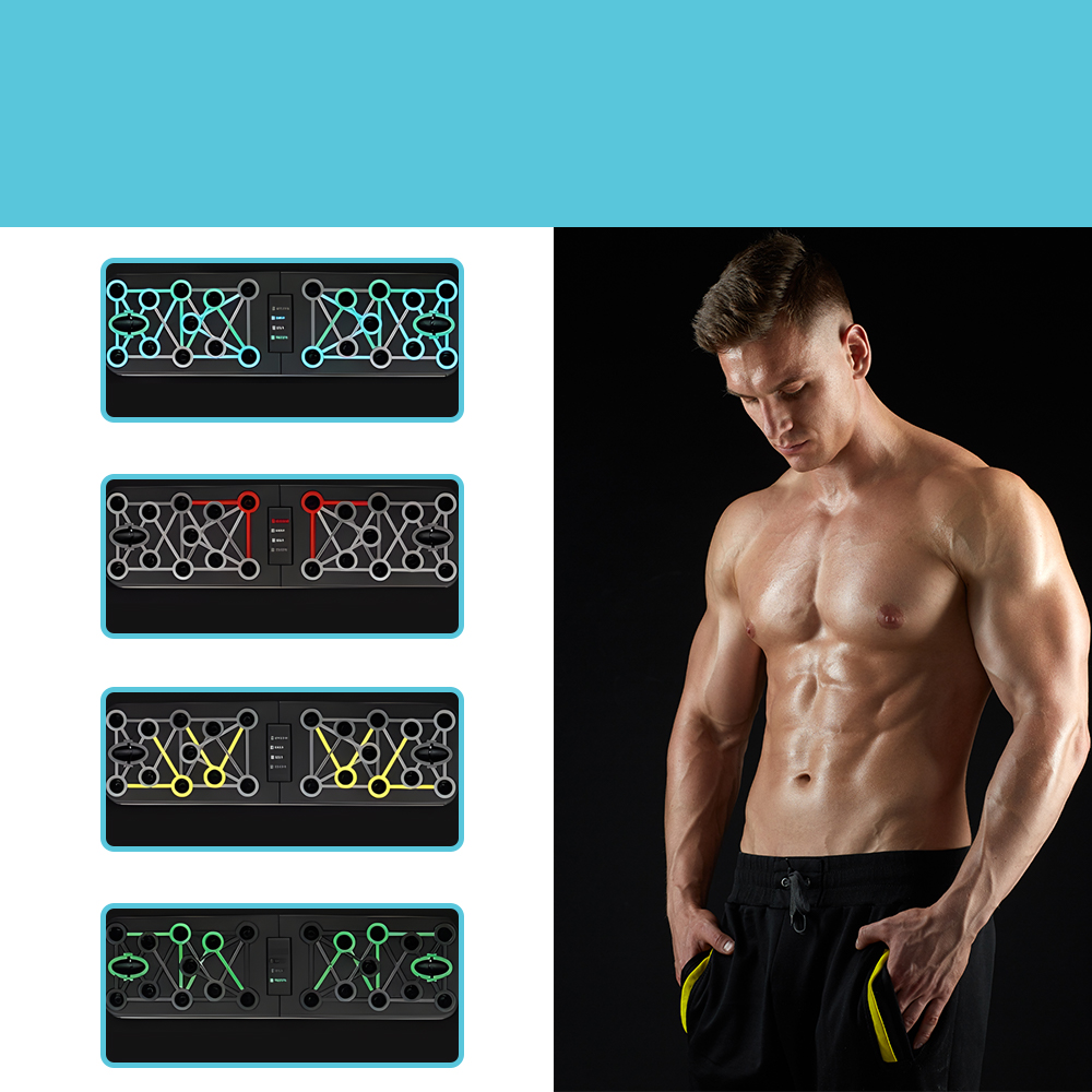 Многофункциональная насосная пластина, в соответствии с различными отверстиями на доске, изменяет мышечную силу во время отжиманий, позволяет эффективно тренировать мышцы рук, плеч, спины, живота и груди.