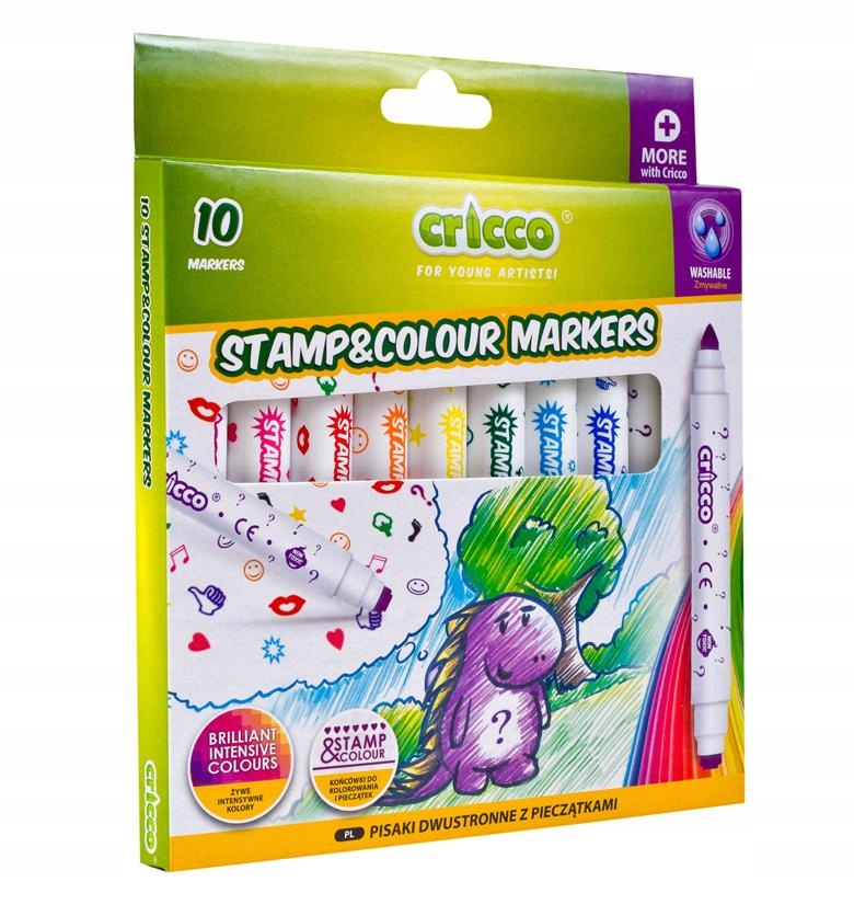 Супермягкие, толстые двусторонние маркеры для рисования и раскрашивания. Благодаря заостренному кончику с одной стороны они идеально подходят для маркировки как мелких деталей, так и более крупных элементов. С другой стороны, на ручках есть причудливые красочные штампы. 10 маркеров в картонной коробке с окошком.