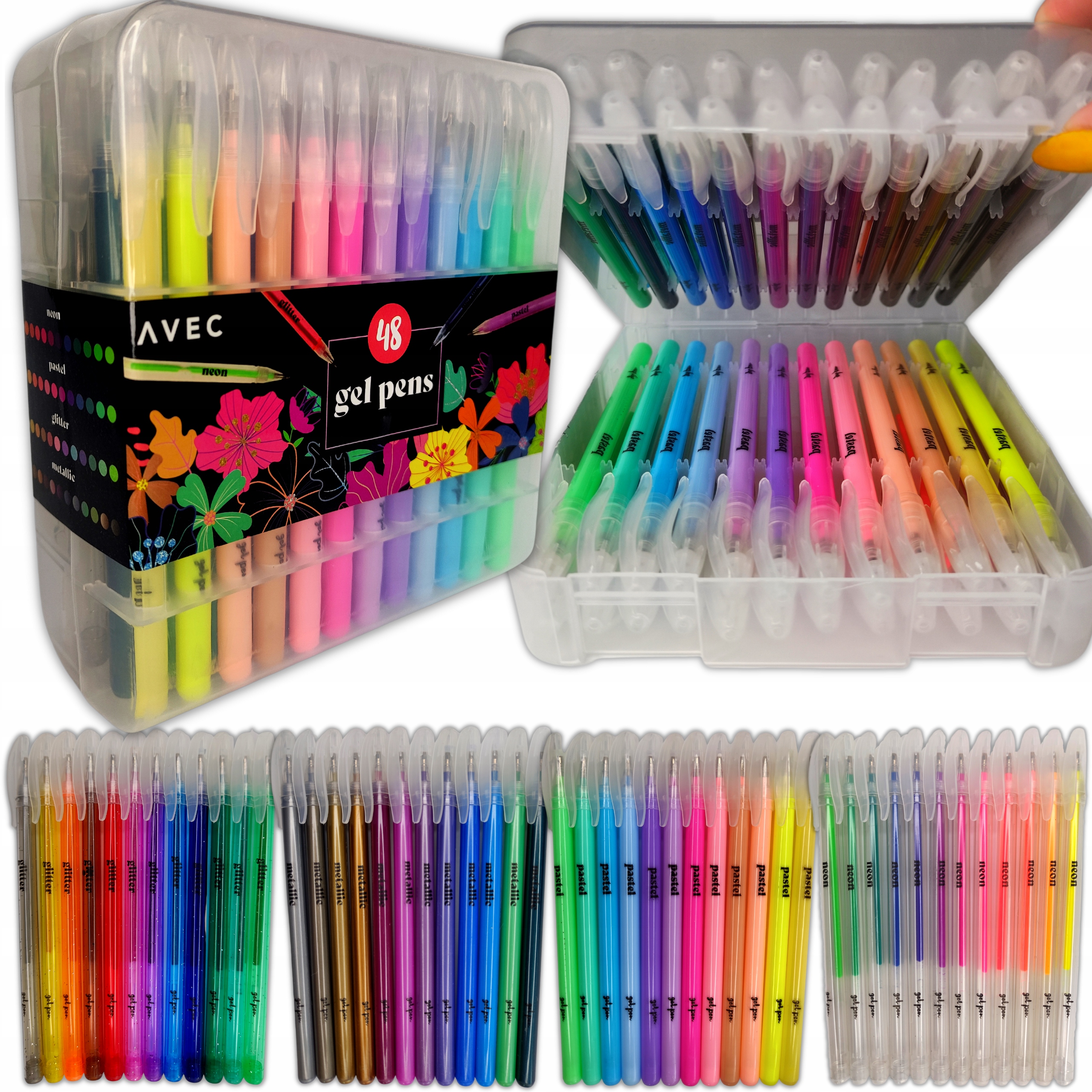 ✨ НАБОР ГЕЛЕВЫХ РУЧОК С БЛЕСКАМИ НЕОН ПАСТЕЛИ ЦВЕТНЫЙ НАБОР ИЗ 48 НАБОРОВ AVEC