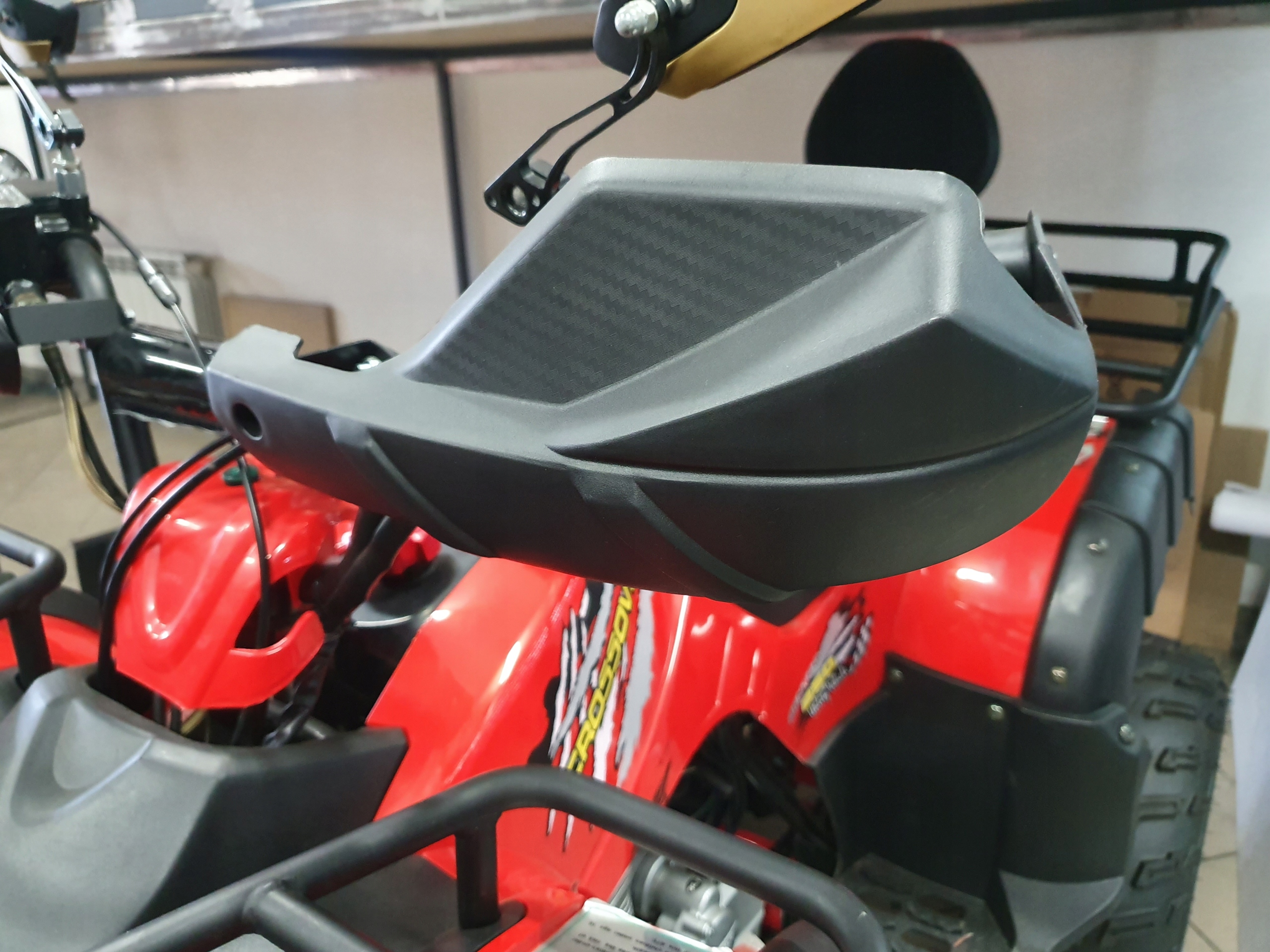 В галерее товаров на нескольких фотографиях изображены защиты для рук HANDBARY, установленные в виде четверки . Кроссовер 250 Benyco.