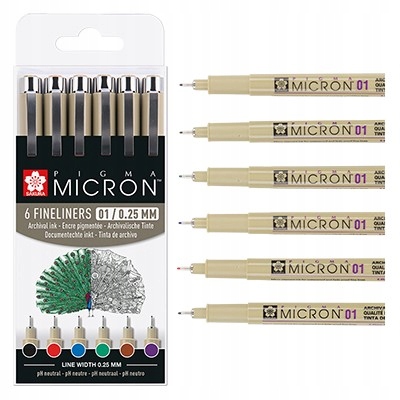 Высококачественные лайнеры с архивными чернилами Pigma Micron от бренда Sakura. Базовая цветовая гамма. 6 цветов.