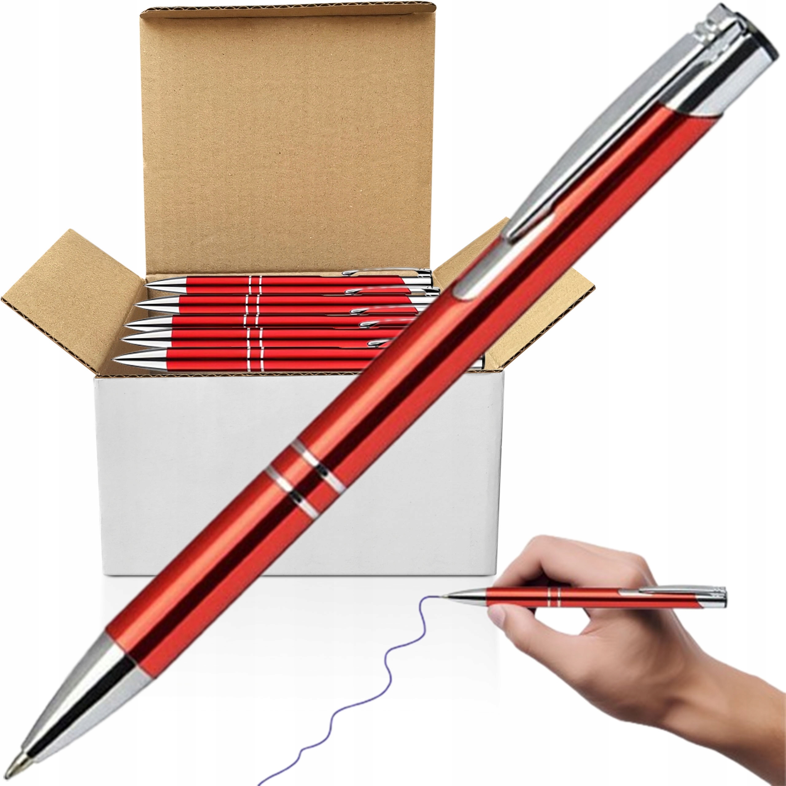 РУЧКИ РЕКЛАМНІ МЕТАЛЕВІ АВТОМАТИЧНІ ЧЕРВОНІ 100 ШТ. СИНІ ЗАП