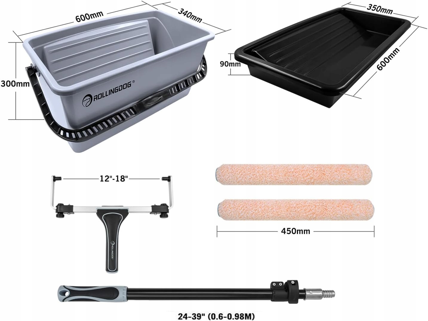 Полный набор живописи Rollingdog является идеальным решением для людей, выполняющих работу на больших поверхностях. Набор включает в себя до 20 элементов, в том числе широкий ролик 45 см с регулируемой рамой, легкий телескопический стержень с длиной 61-99 см, мини -ролик 10 см с 6 крышками, большое ведро с тонким подносом/крышкой и одноразовым вставками и тому подобным. Профессиональные рукава 3/8 микрофибры «Убедитесь, что даже нанесение краски без чрезмерных брызг, идеально подходящих для гладких поверхностей стен и потолков. Практический поднос можно использовать в качестве крышки, защищающей ролик и краски между слоями. Набор также включает в себя инструмент для очистки роликов, облегчая удаление избыточной краски и сокращение времени. бренд : rollingdog