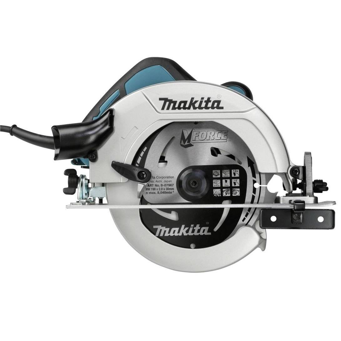 - Ручная циркулярная пила Makita HS7611 – устройство со встроенной, мощный двигатель мощностью 1600 Вт, позволяющий легко работать с тяжелыми материалами.