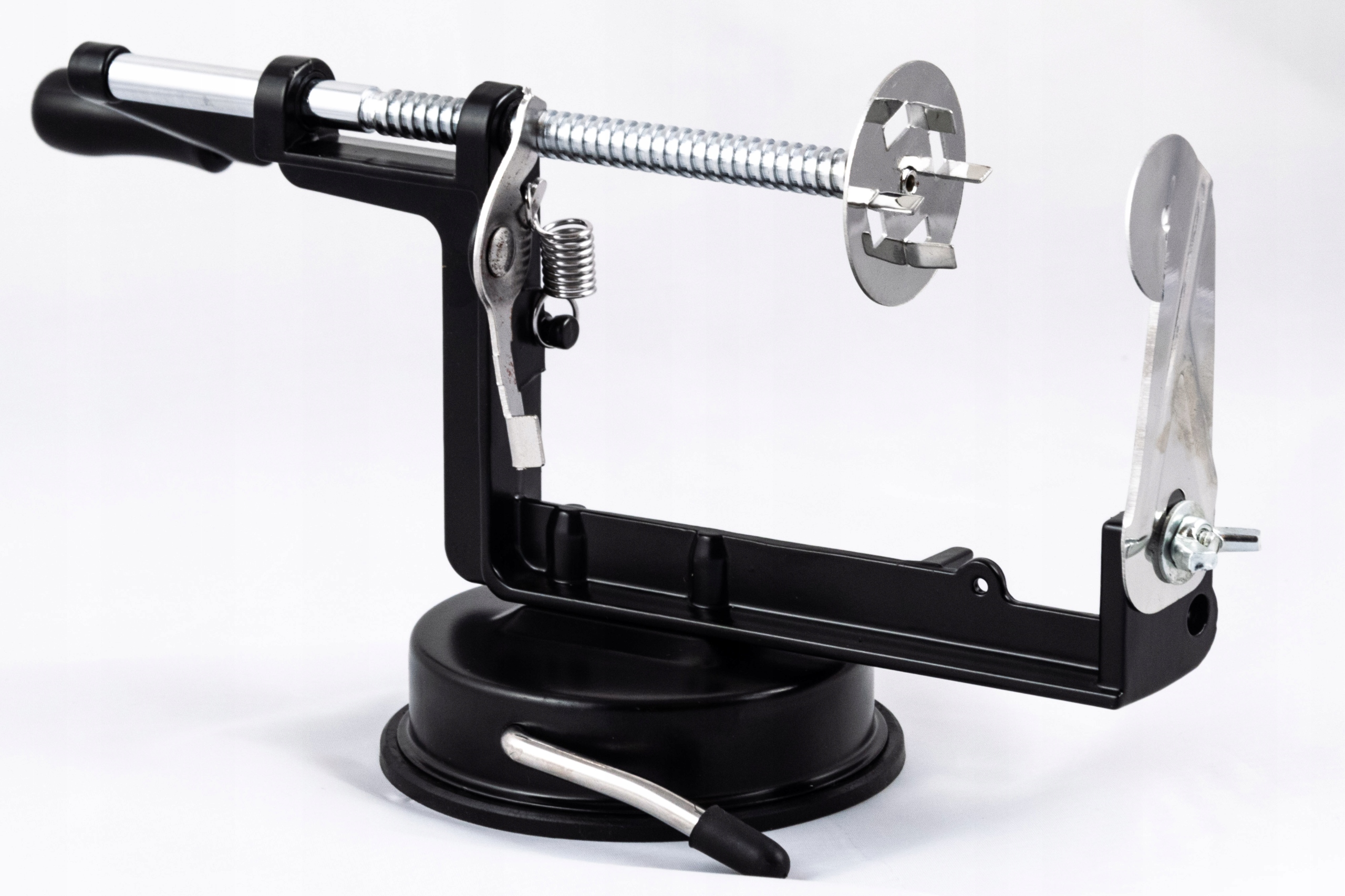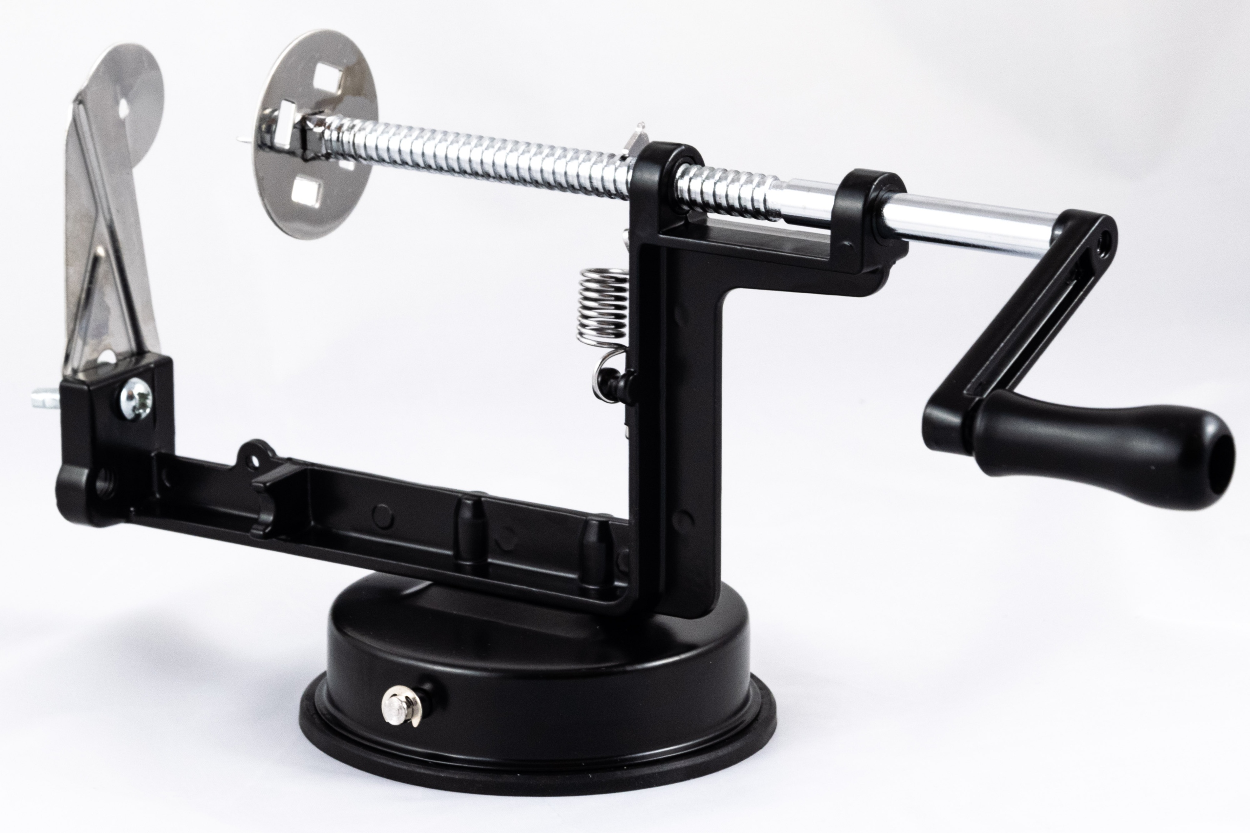 - Шпилька, на которую набивается картофель, и ручка позволяют делать из него буравки.