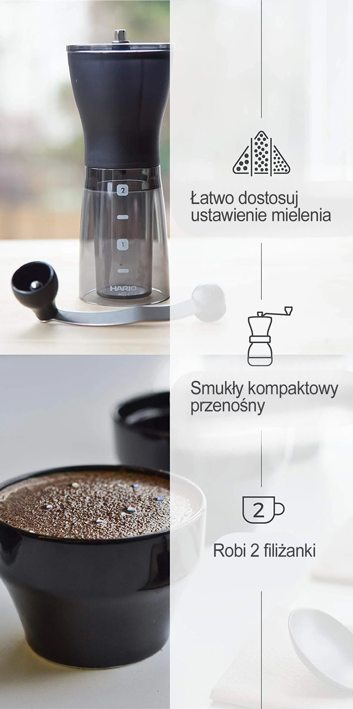 Hario Mini Mill Slim Plus — это новая версия классической кофемолки Hario Mini Mill. В кофемолке используется новый усиленный крючок для ручки шестигранной формы. Новая версия также отличается более темным цветом. Mini Mill Plus — отличная ручная шлифовальная машина для домашнего и портативного использования. Он практичен и удобен, идеален для путешествий, позволит быстро и хорошо перемолоть любимый кофе. Ее можно разобрать за несколько секунд и очистить, промыв теплой водой.
