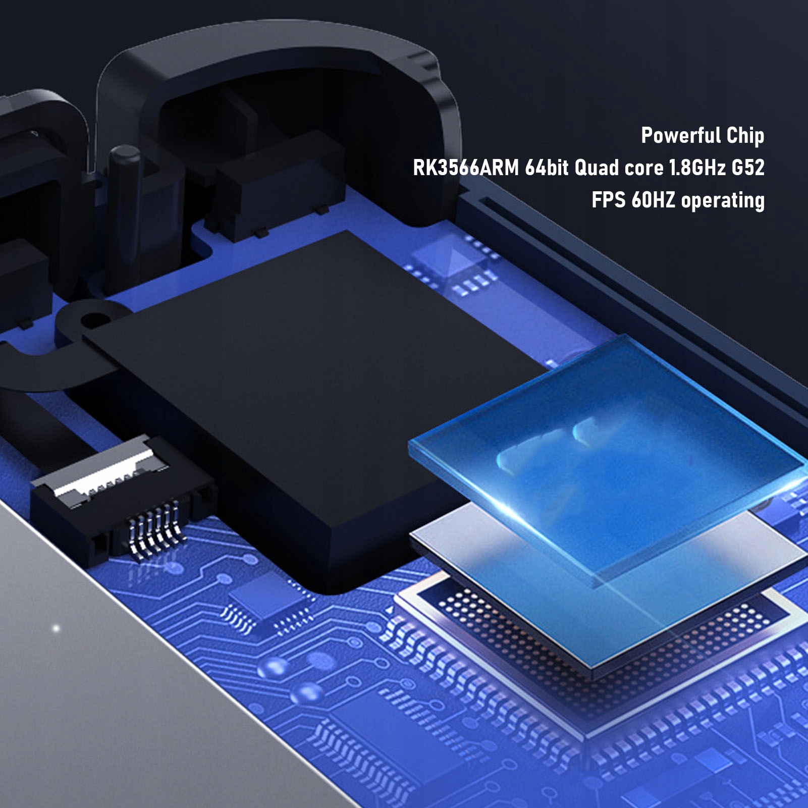 1. Мощный макет: RK3566 ARM 64 -Bitite Four -Core 1,8 ГГц для Mali G52, работающий при 60 Гц. Четыре лучших улучшенных клавиша L R, с ключевой кривизны и системой, предназначенной для более удобного сцепления, увеличивая игры из игр.