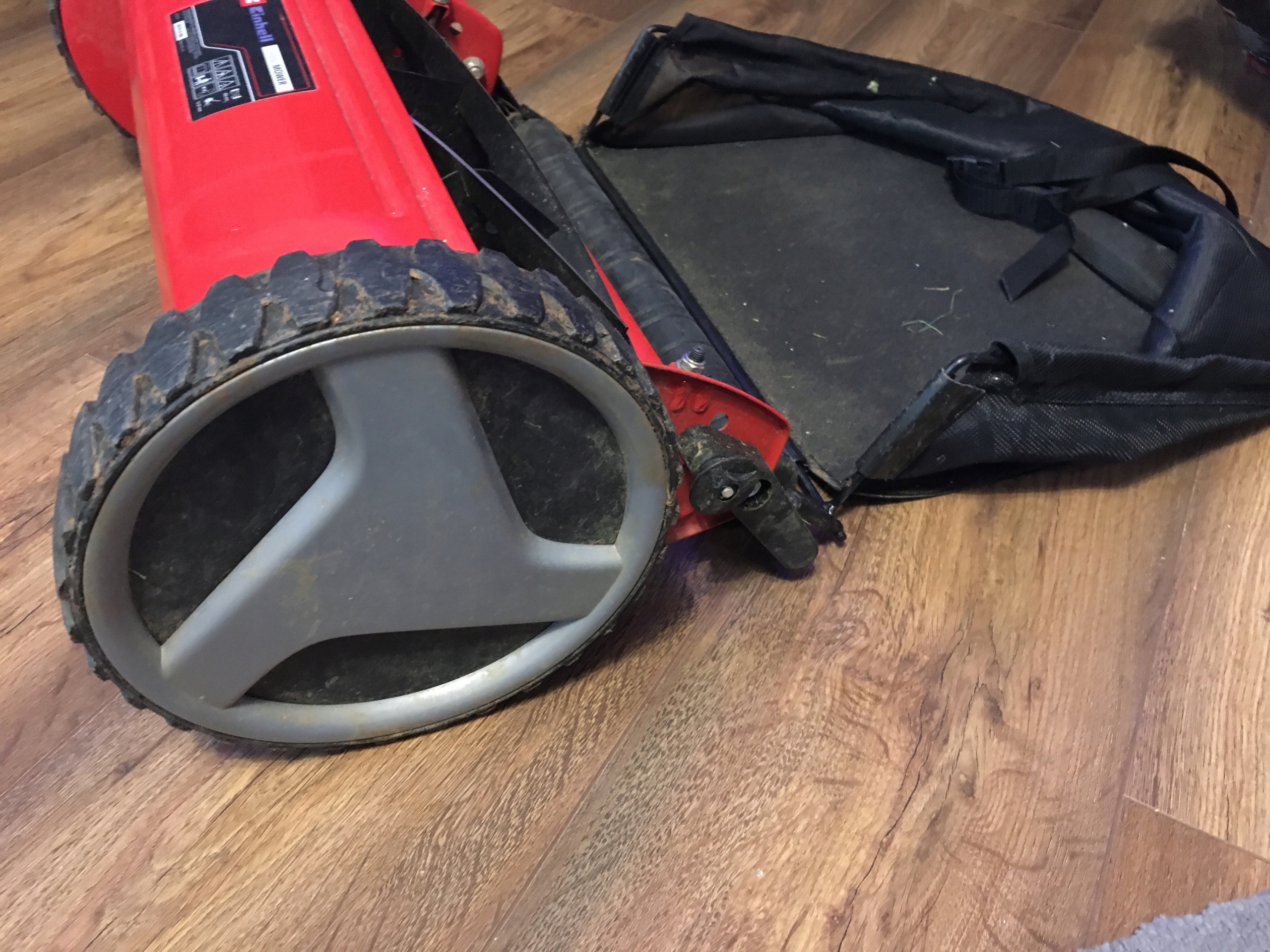 Пластиковый валик имеет диаметр 46 мм. Ручная газонокосилка оснащена большими колесами, удобными для газона. Изогнутая длинная рукоятка обеспечивает оптимальную эргономику при работе.