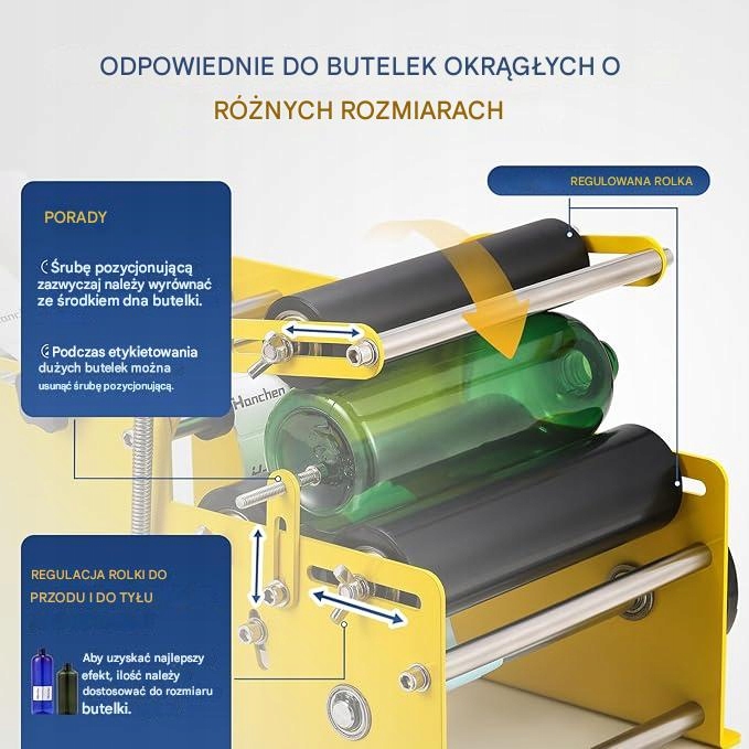Hanchen Ручная этикетировочная машина для круглых бутылок — надёжное решение для всех, кто ожидает отлично нанесенных этикеток и эстетичного внешнего вида продукта. Забудьте о кривых наклейках и потраченном времени — теперь маркировка становится быстрой, простой и точной.