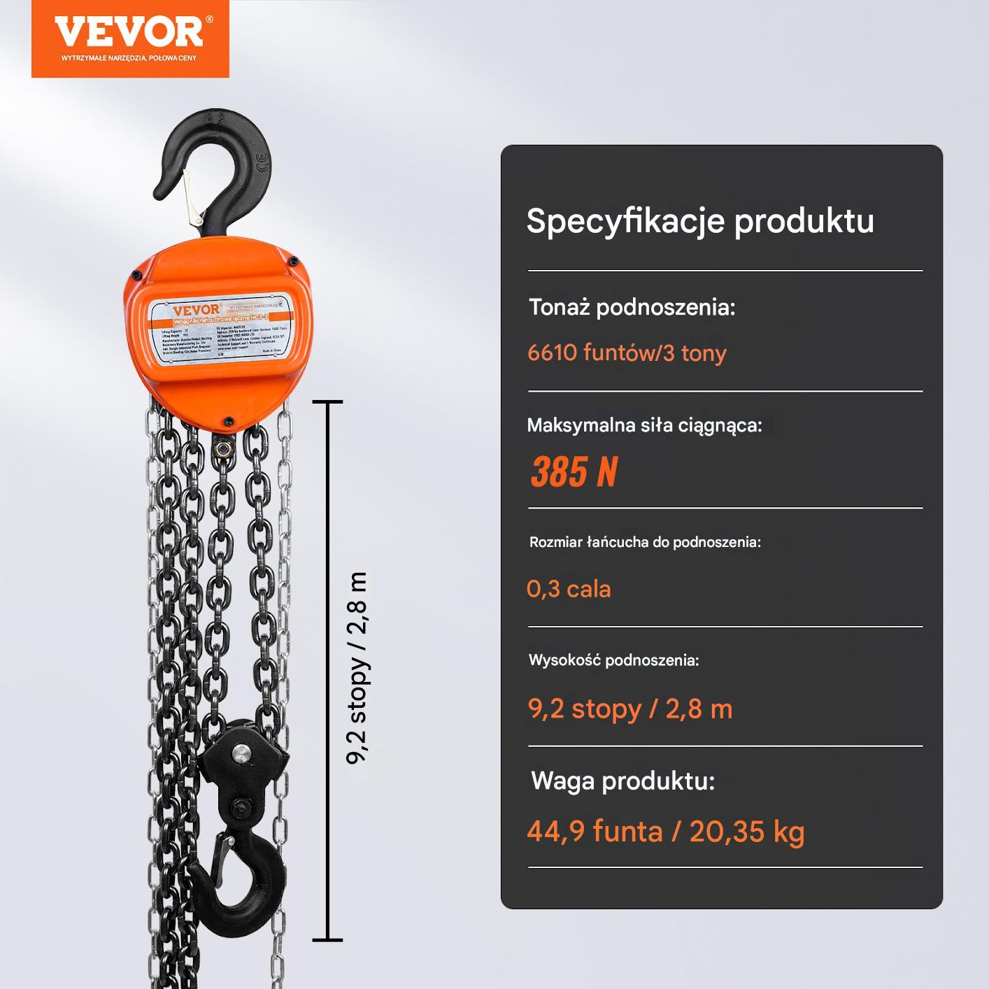 Вам нужно оборудование, которое будет нести самые сложные проблемы? Эта ручная цепная лебедка с грузоподъемностью 3 тонны и высота подъема 2,8 м, является решением для профессионалов и любителей. Сплошные, компактные и надежные - поднимите свои возможности на более высокий уровень!