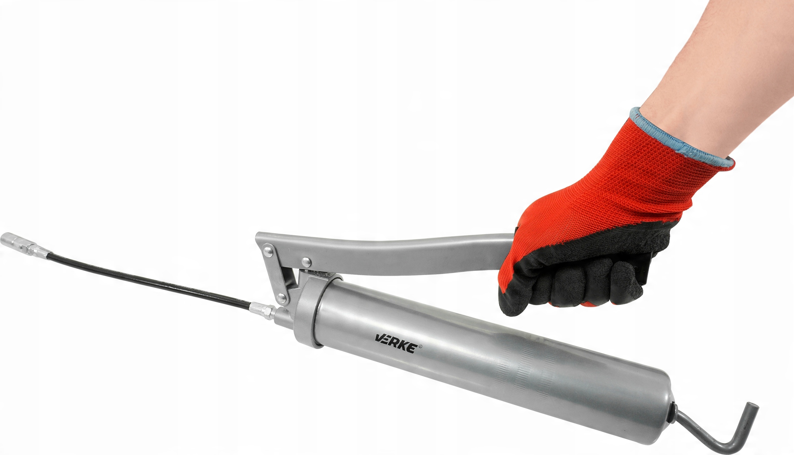Смазочный шприц марки Verke представляет собой устройство, используемое для смазки под давлением механических элементов, таких как валы, штифты, подшипники, шарниры. Он изготовлен из стального цилиндра емкостью 500 мл, в котором действует поршень с ручным приводом. Поршень изготовлен из высококачественной резины, устойчивой к длительному воздействию жиров и масел. В комплект входят две жесткие и гибкие насадки, подходящие к стандартным каламиткам.