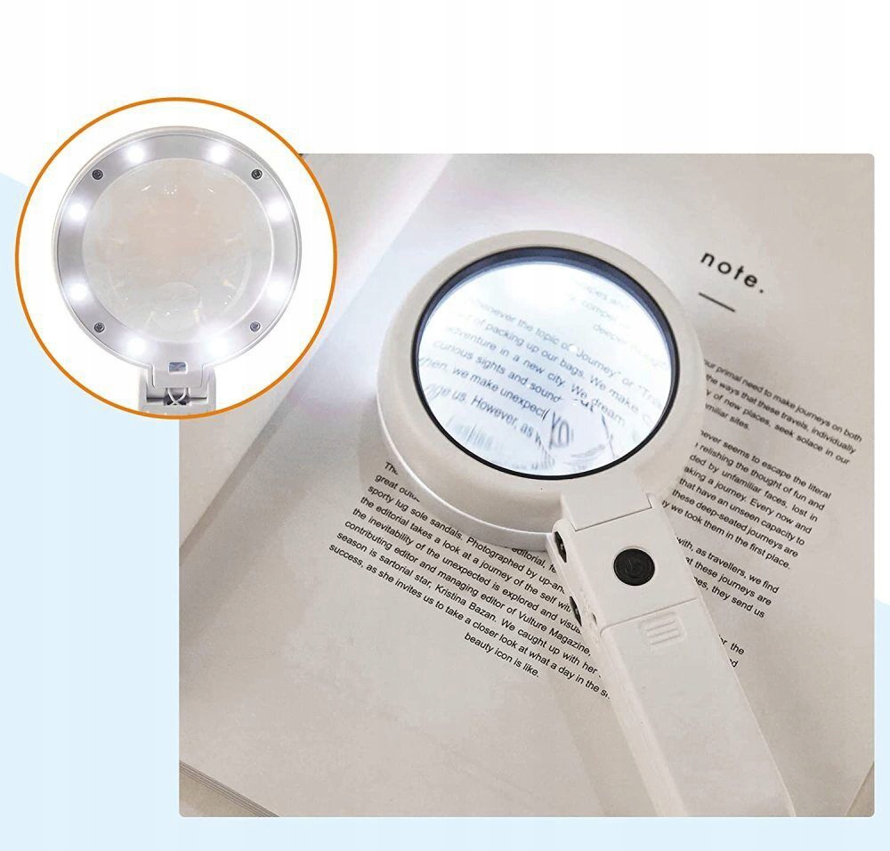 РУЧНА ЛУПА ДЛЯ СТАРШИХ, ЮВЕЛІРНА, ОГЛЯДОВА, З 8 СВІТОДІОДАМИ