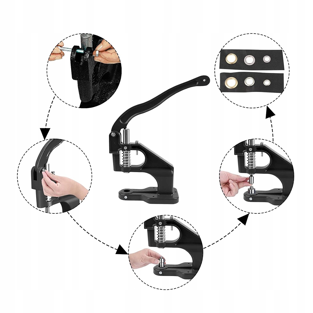 ⭕Просто поместите ручную петельку на стол, прикрепите люверсы и переплетный материал, а затем нажмите на ручку, чтобы завершить операцию.