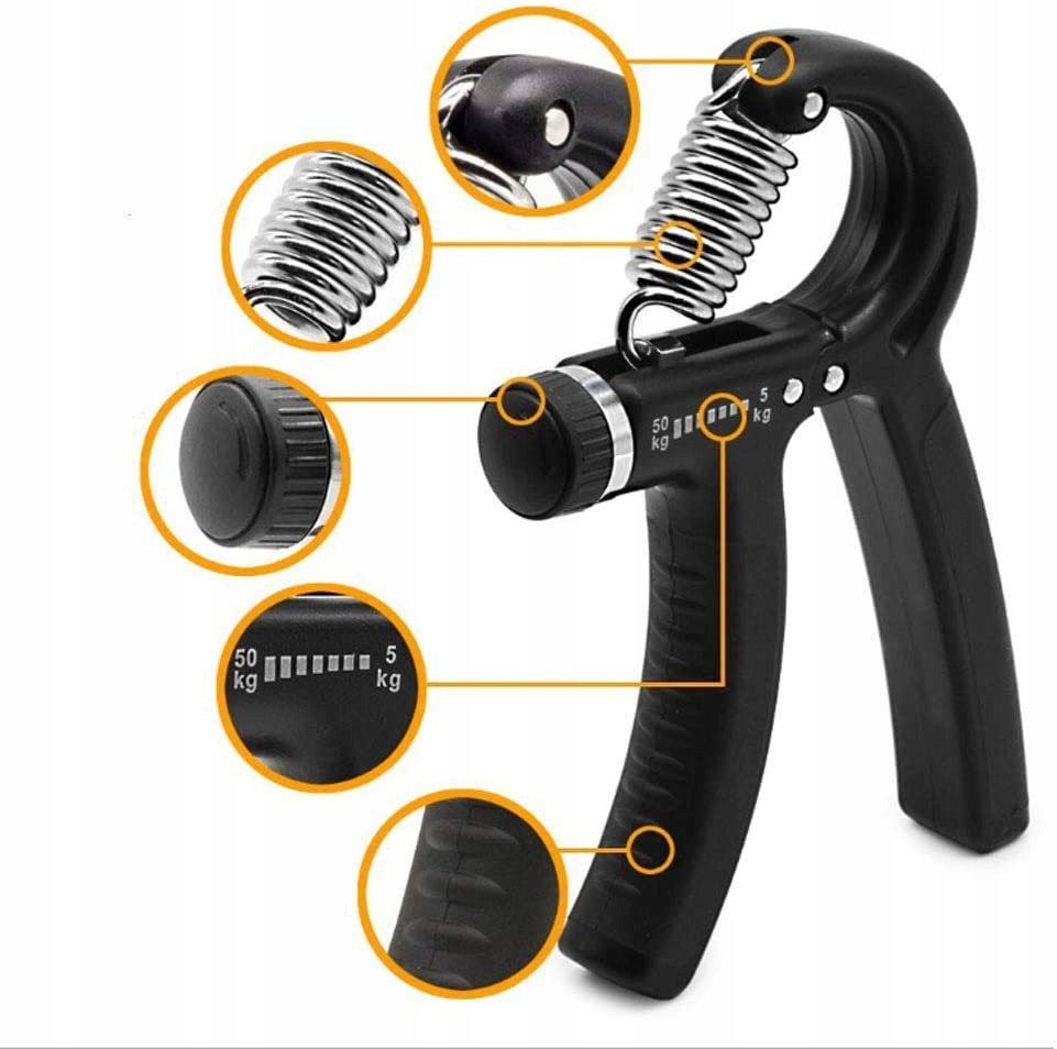 Рукаватель для упражнений для рук — аксессуар, который идеально подходит в качестве дополнения к силовым тренировкам для повышения уверенности и силы рукопожатия - Достаточно всего лишь нескольких минут упражнений в день, чтобы заметить эффект! Устройство позволит тренировать мышцы рук, предплечий и кистей. Он будет идеален не только во время тренировок, но и во время реабилитации после травмы или операции. Диапазон сопротивления 5-60 кг, регулируется специальной ручкой, расположенной сбоку устройства. Ручки покрыты противоскользящим покрытием.