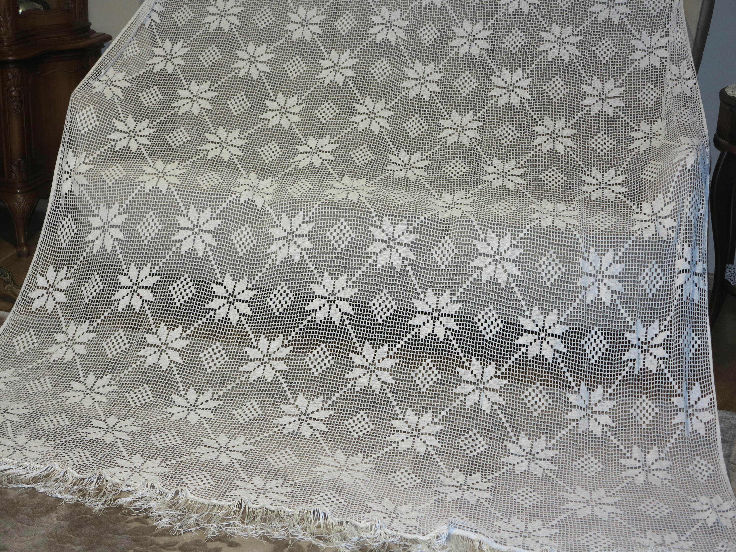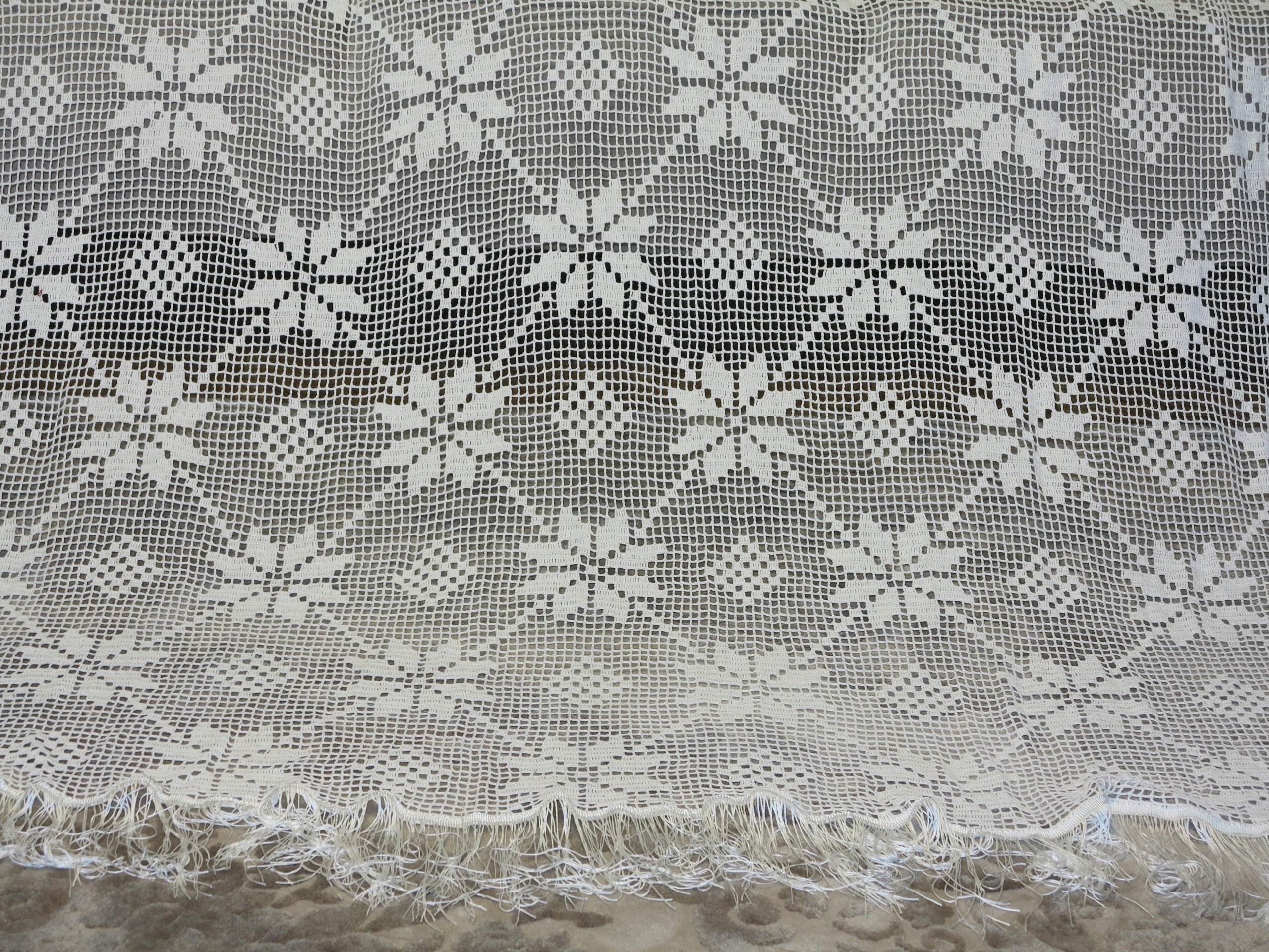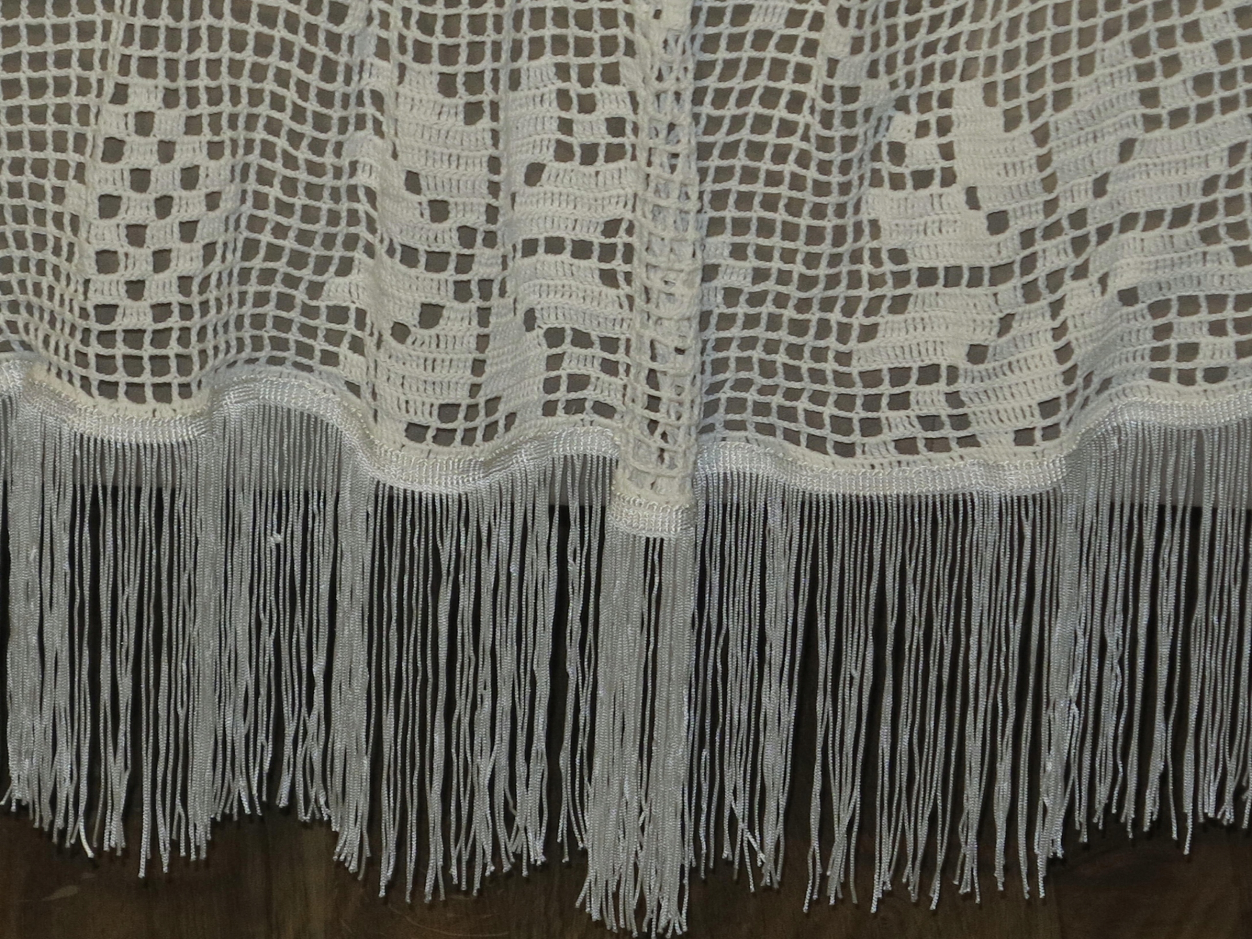 ОЧЕНЬ КРАСИВУЮ, БОЛЬШУЮ КОРДОННУЮ ШТОРУ ПОЛНОСТЬЮ РУЧНОЙ РАБОТЫ. НИЗ УКРАШЕН ДЛИННОЙ струящейся бахромой. ЦВЕТ КРЕМОВЫЙ БЕЛЫЙ. ШТОРА ИЗ ХЛОПКОВЫХ НИТЕЙ, ВЫПОЛНЕНА ОЧЕНЬ ИНТЕНСИВНО ТОНКИМ ВЯЗАНИЕМ Крючком